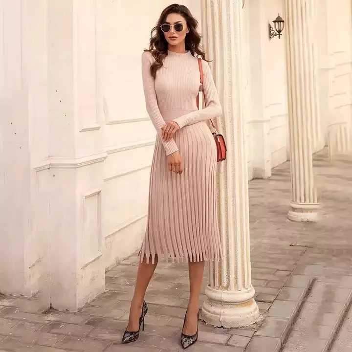 Fashion Casual Women Lady Long Dress for Ladies Knitted Sweater Dress