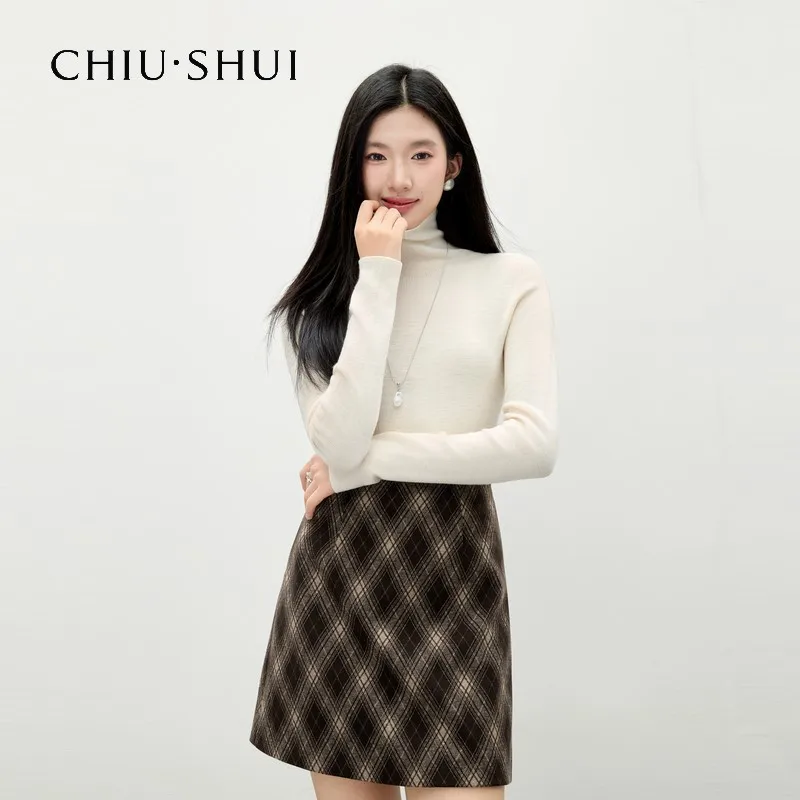 Women's 100% Wool Turtleneck Sweater Winter New Style Versatile Slim-Fit Base Layer Top