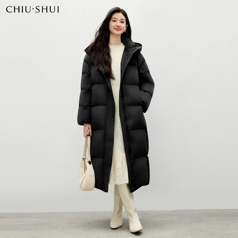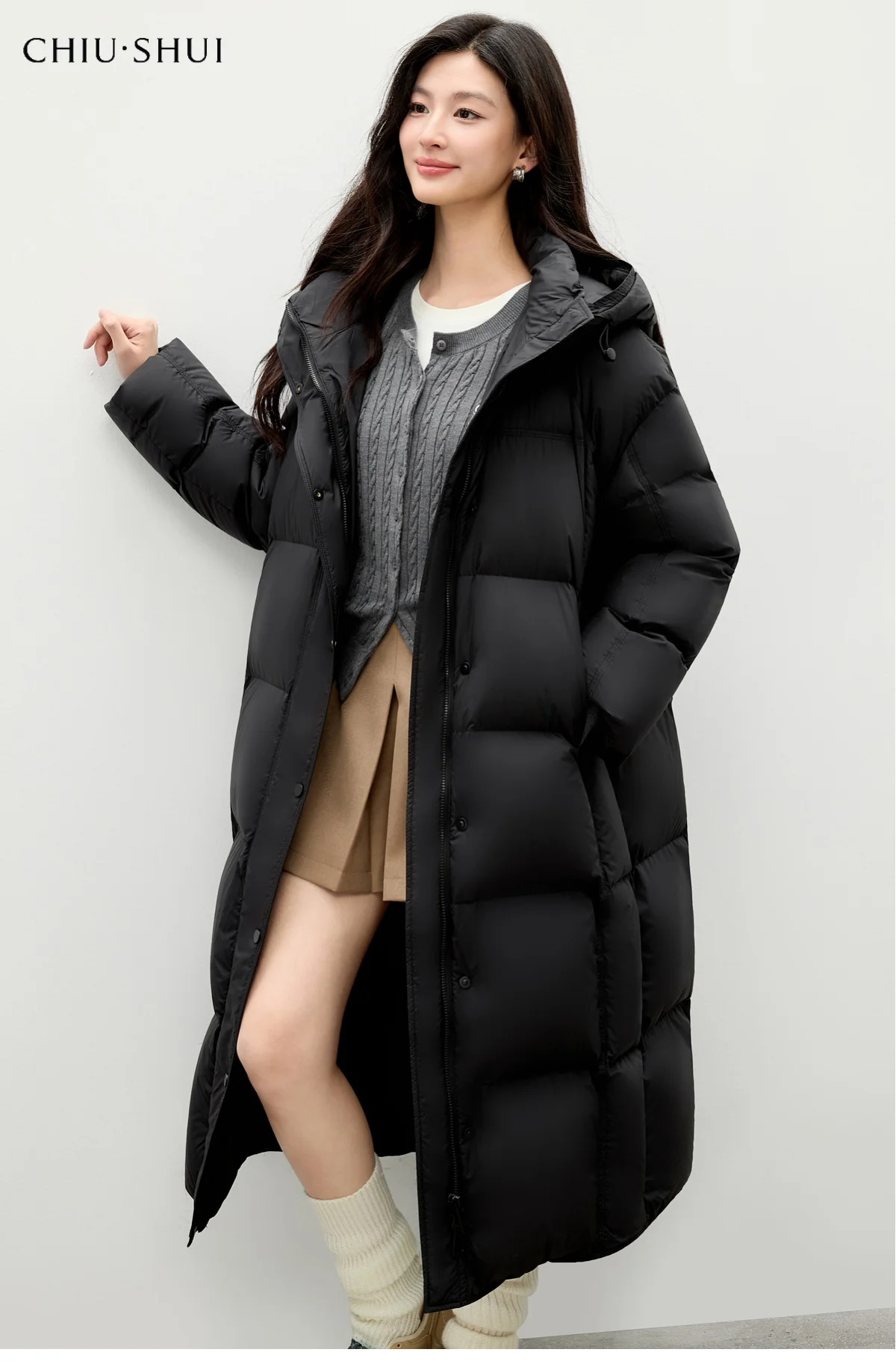 Hot Sale Timeless Women's Long Down Jacket Black Puffer Coat With Hood Warm Winter Outerwear