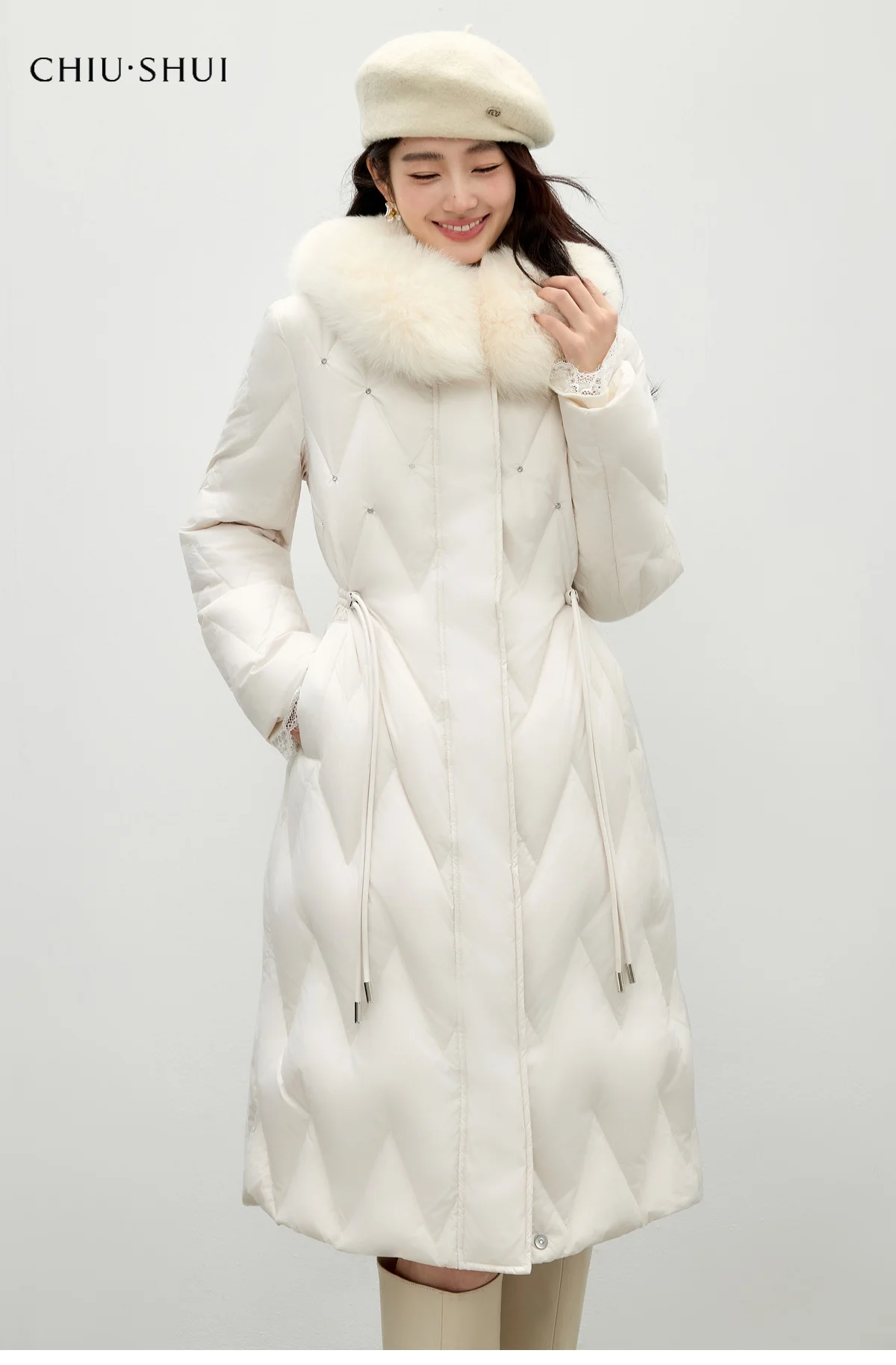 Comfortable New Arrival Women's Long Down Coat With Fox Fur Collar Warm Winter Jacket for Ladies