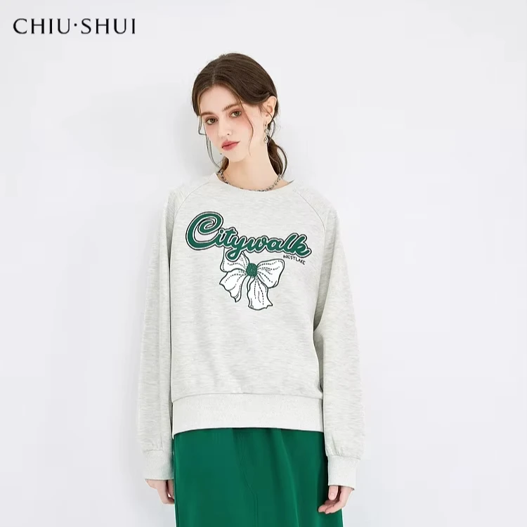 Crew Neck Color Letter Embroidery Long Sleeve Casual Fashion Women Sweatshirt Suit