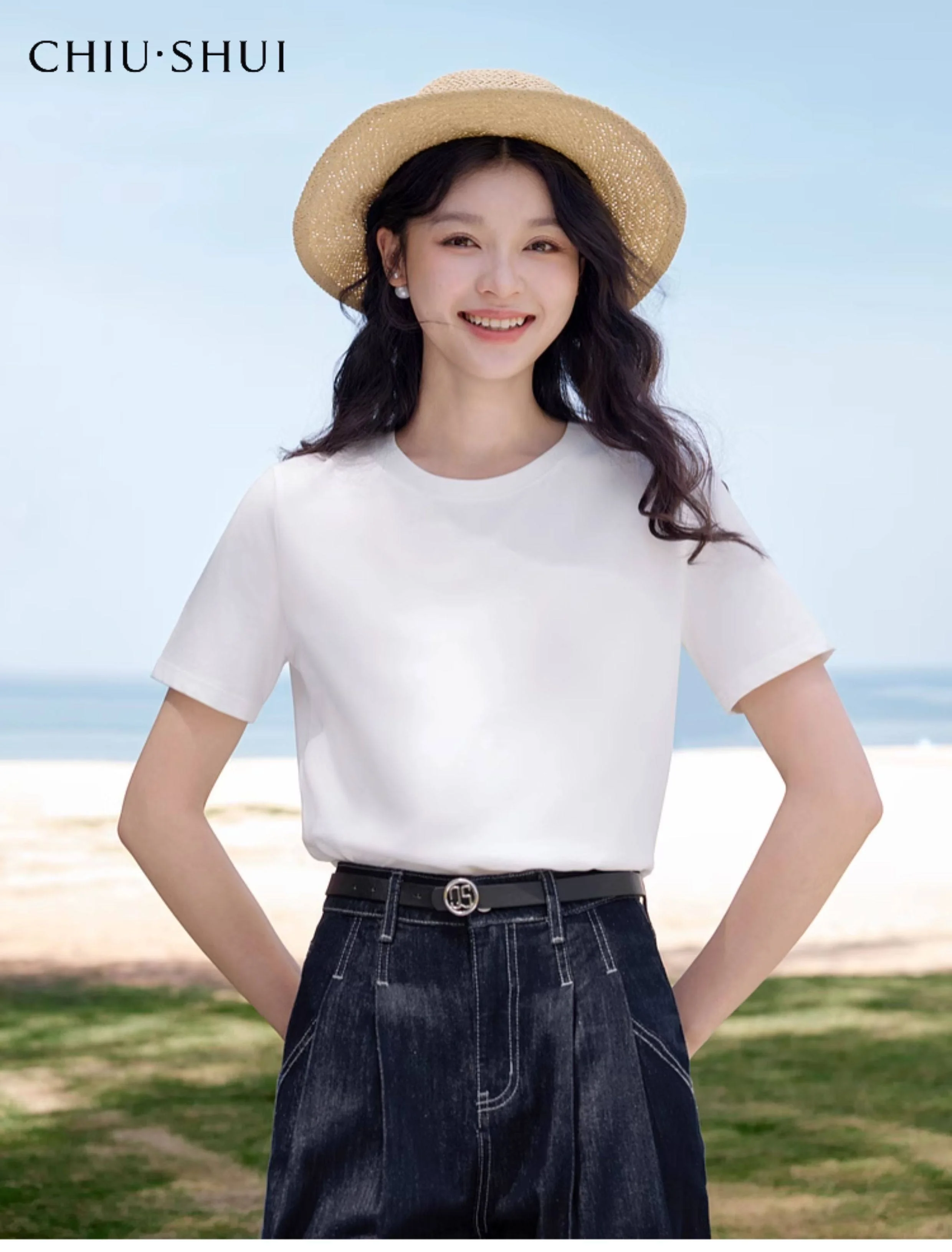 Women's Cotton Solid Color T-shirt Summer New Fashion Elegant Commuting Crew Neck Short Sleeve