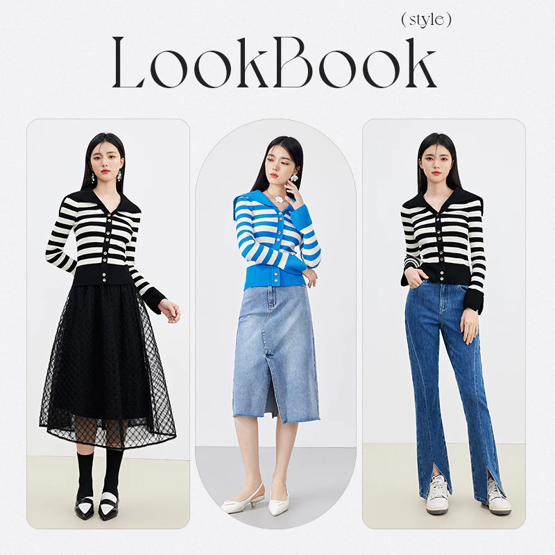 Early Winter Fashion Knitted Cardigan for Women Elegant Casual Black Striped Sweater Button New Top