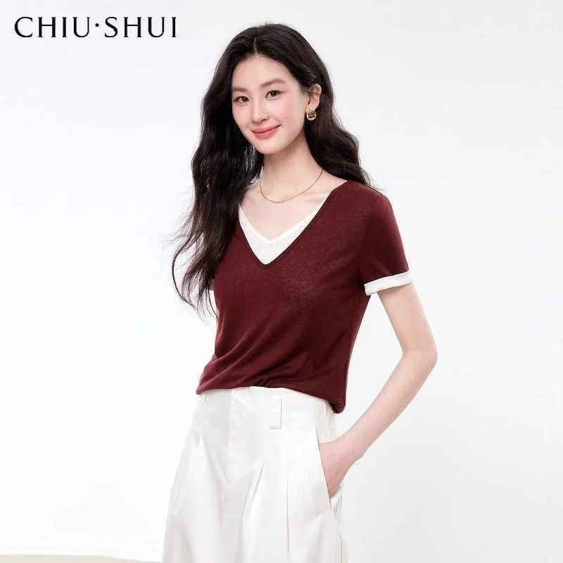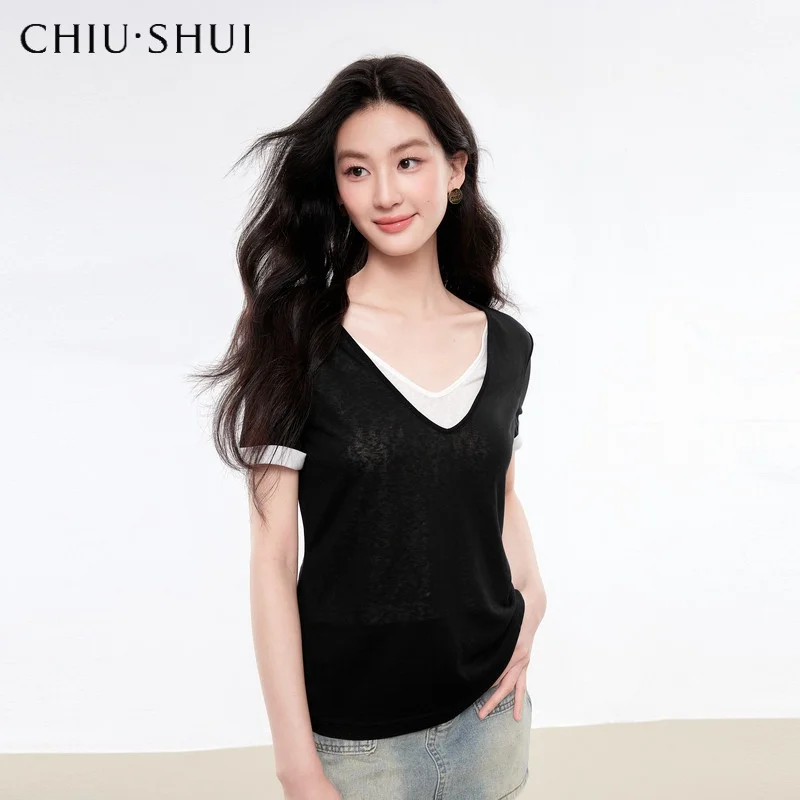 High Quality Women's Summer New Short-sleeved Casual Minimalist Lyocell & Polyester Fashion Top