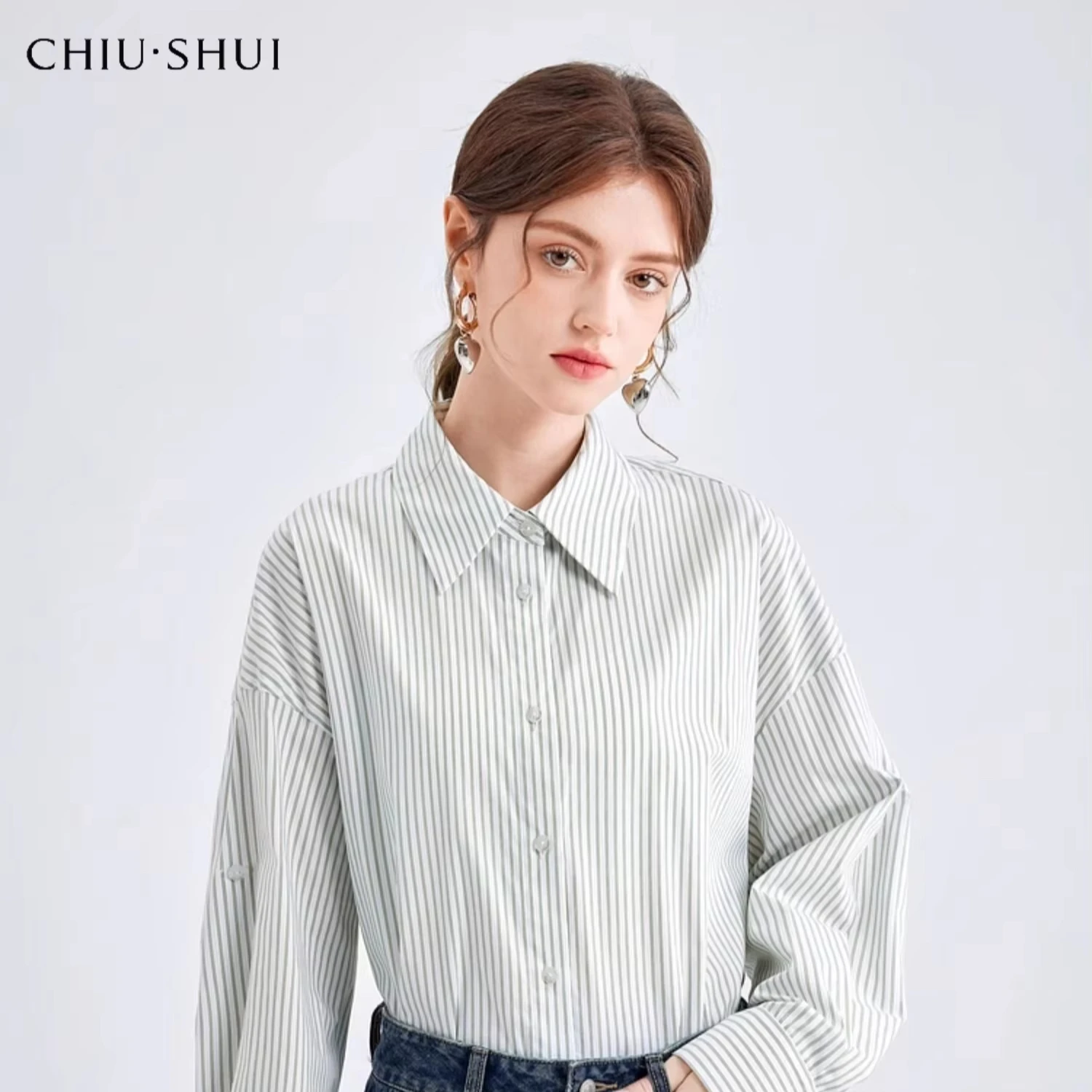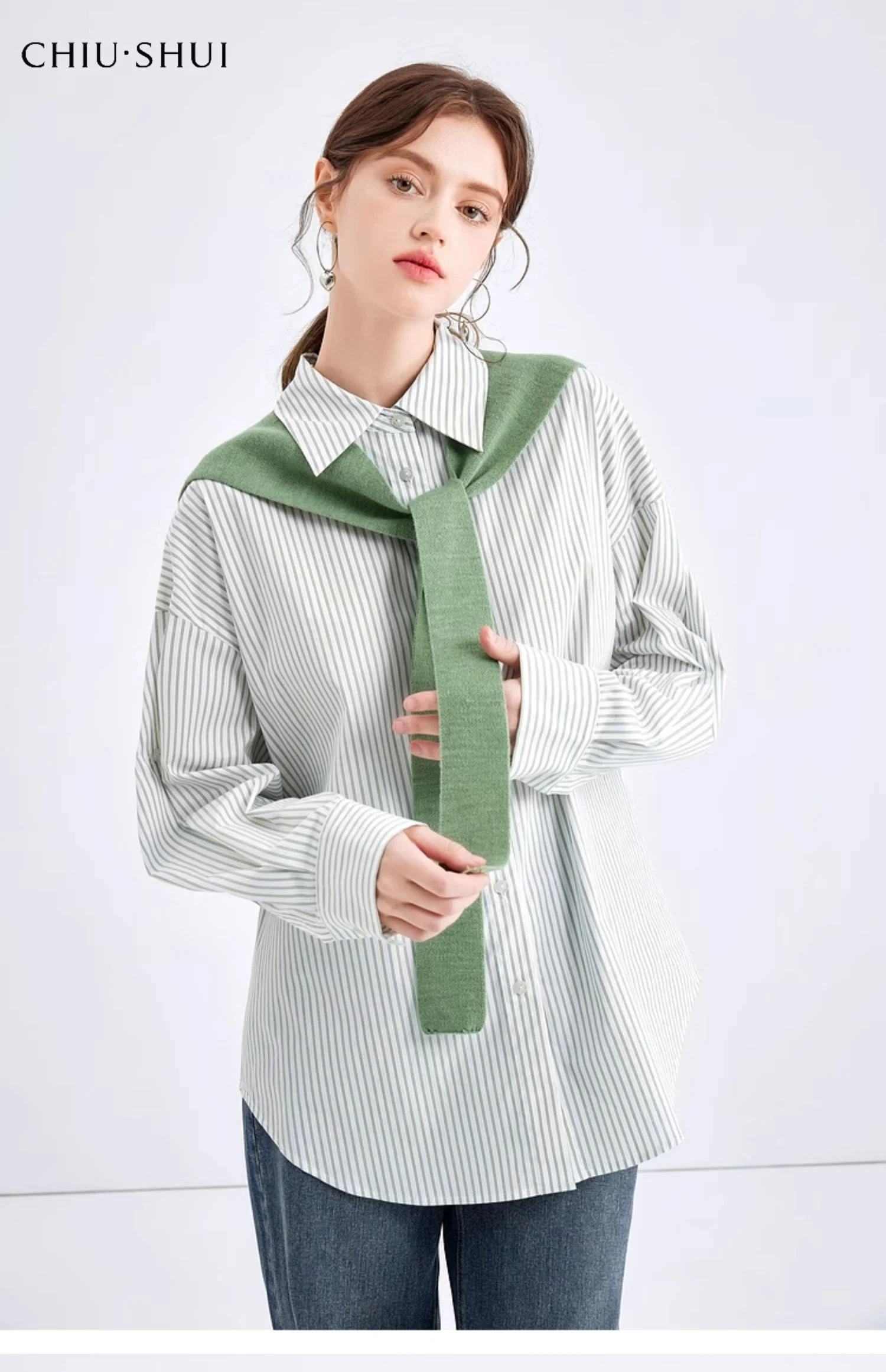 Autumn New Korean Style Girls' Casual Striped Long Sleeve Suit with Detachable Shawl Blouses Shirts