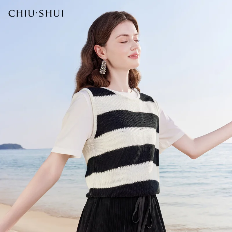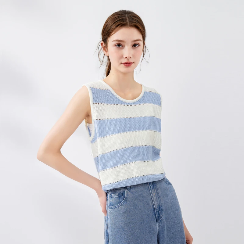 New Women's Knit Top Lazy Casual Striped Knitted Vest Round Neck All Match Sleeveless Top