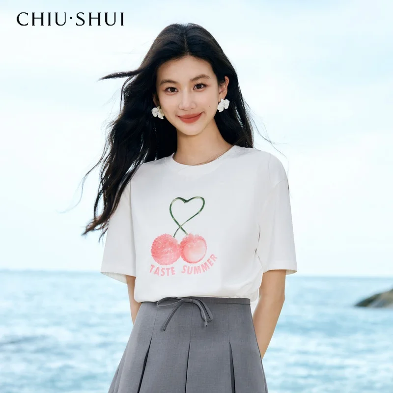Women's Crew Neck Cotton-Polyester Blend Printed Short Sleeve Casual Minimalist Three-Dimensional Straight Type Summer