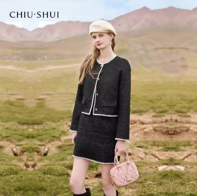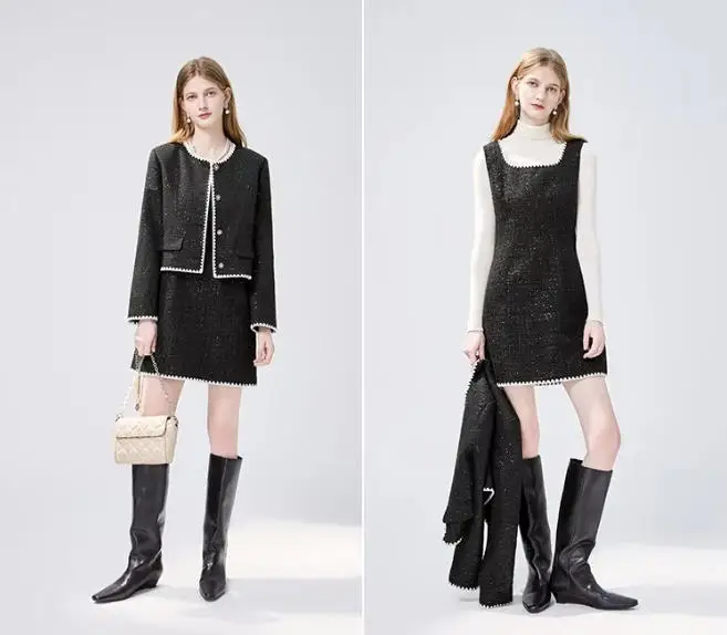 Winter New Women's Box Jacket Vest Dress Black Fragrant Style Two Piece Set with Top