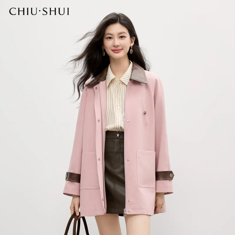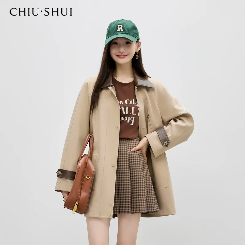 Women's Petite Autumn Vintage Fleece Lining Mid-length Trench Coat with All-match Lapel Design