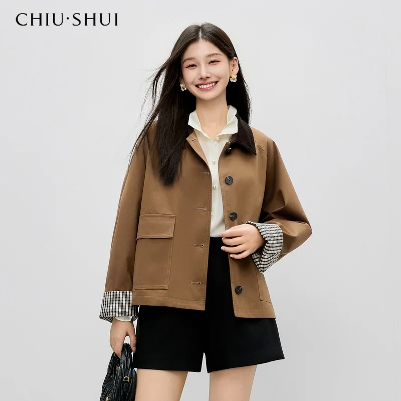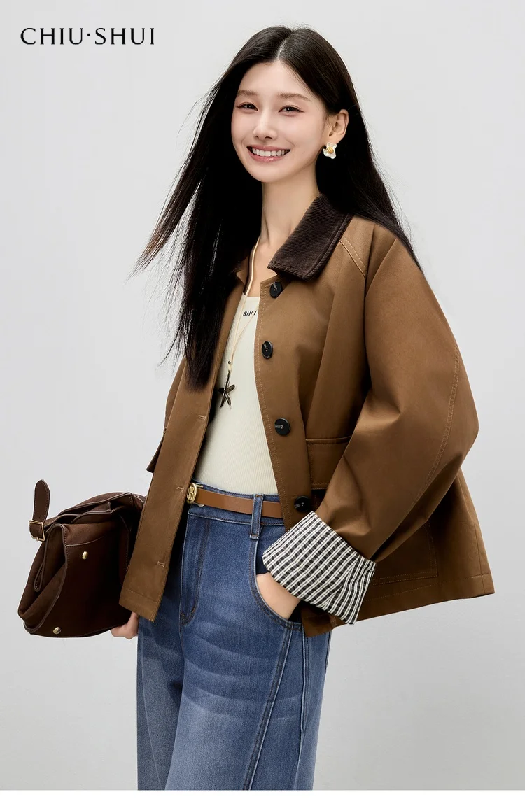 Coffee Color Women's Autumn Single Breasted Vintage Poncho 100% Cotton Full Sleeve