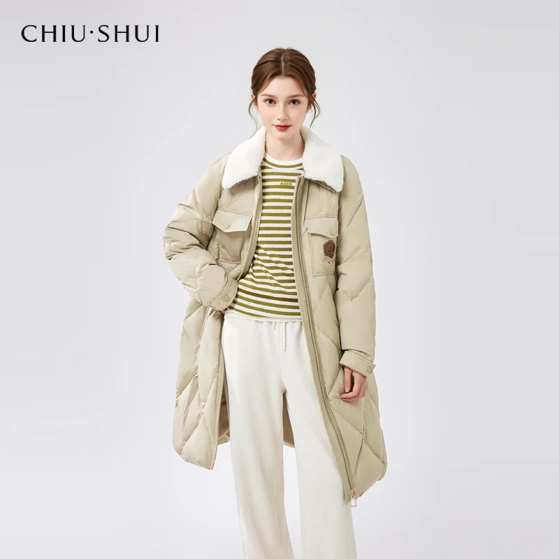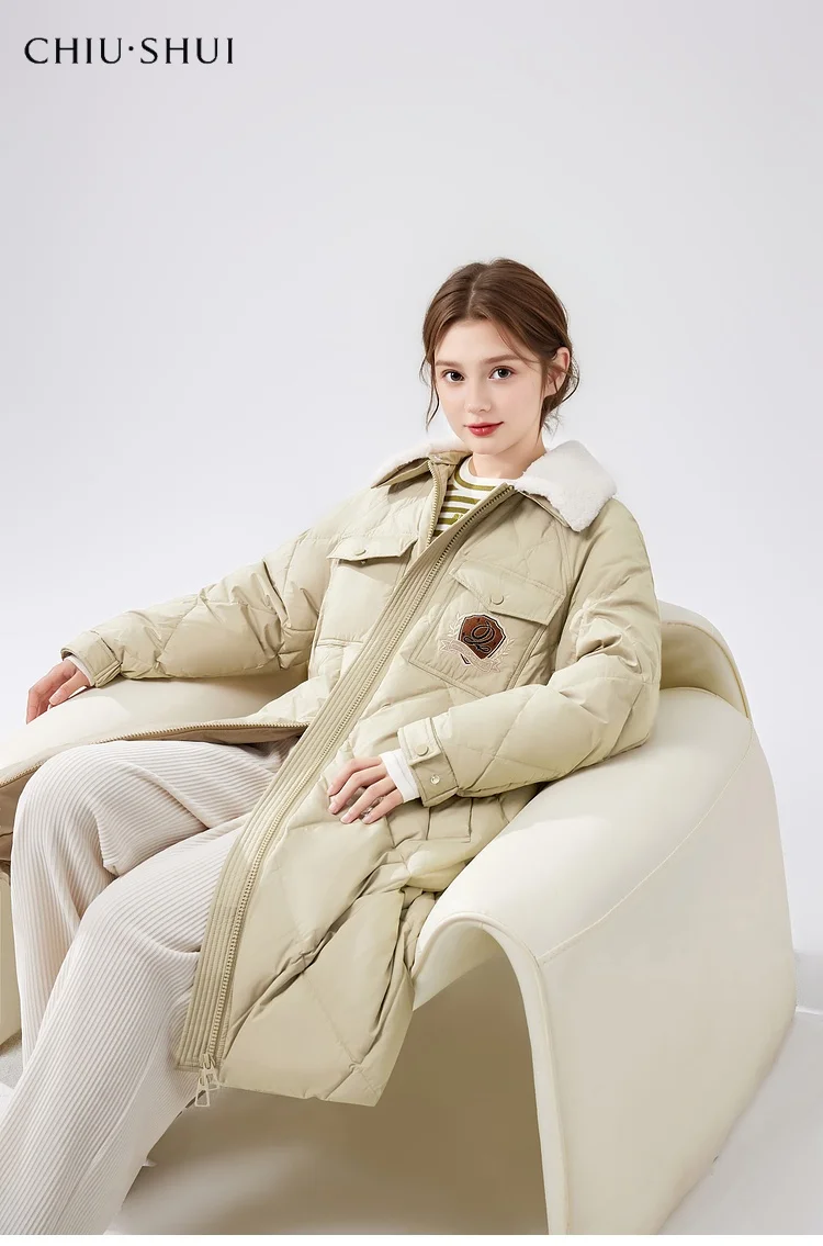 New Arrival Women's Mid-Length Warm Jacket Leisure Academy Style Snake Skin Leather Lapel Down Jacket