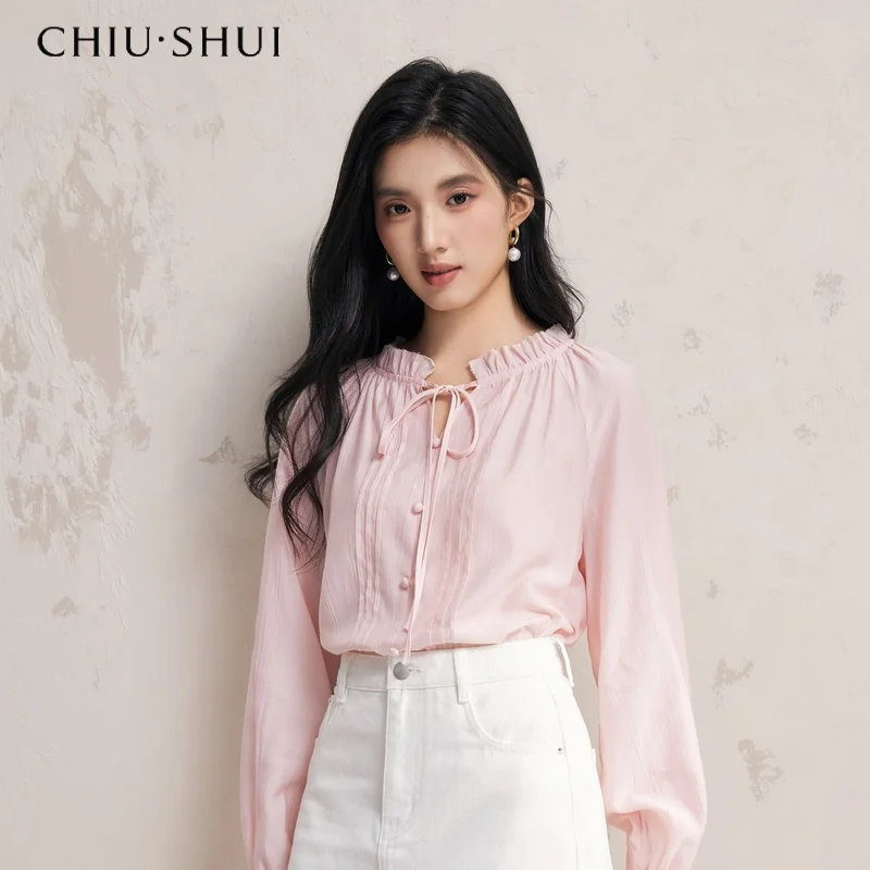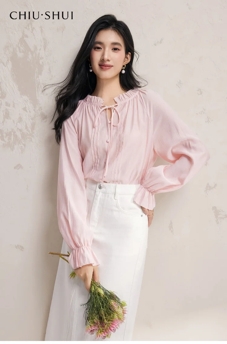 Women's Cute French Style Broadcloth Woven Elastic Cuff Casual Shirt Party Solid Simple Spring New Top