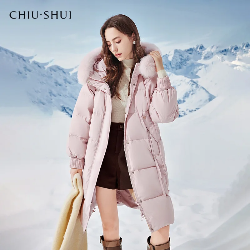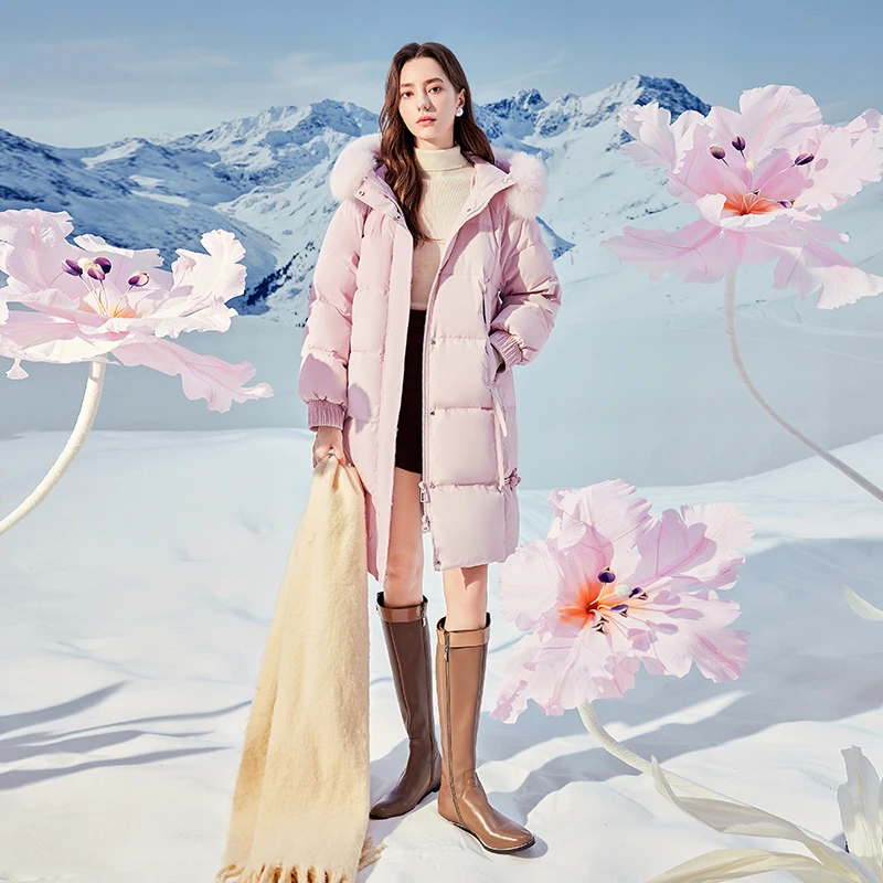 New Women's Detachable Fox Fur Collar Mid-Length Down Jacket Snake Skin Hood 90 White Duck Coat