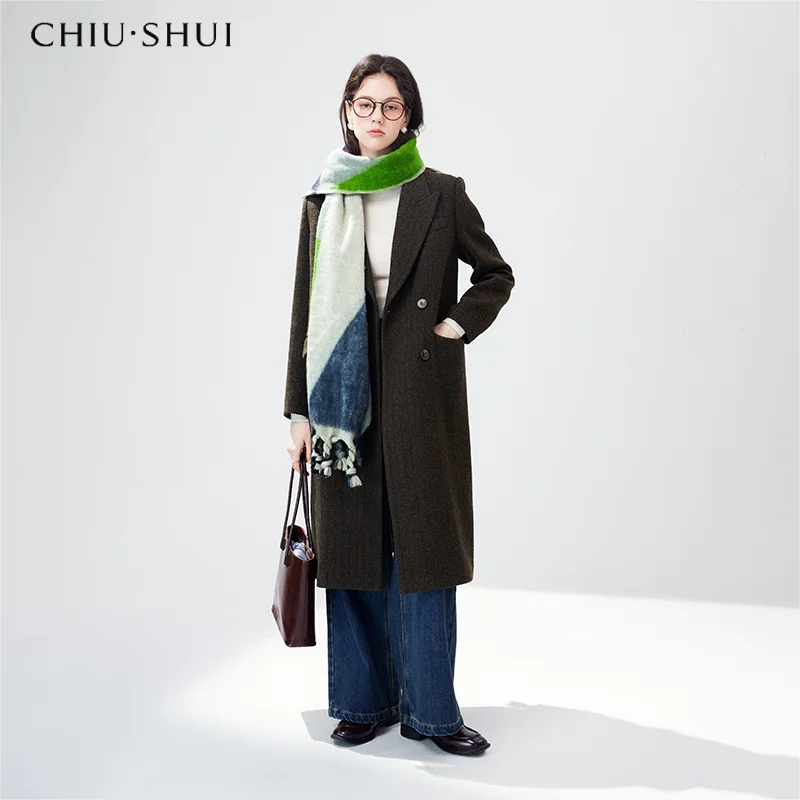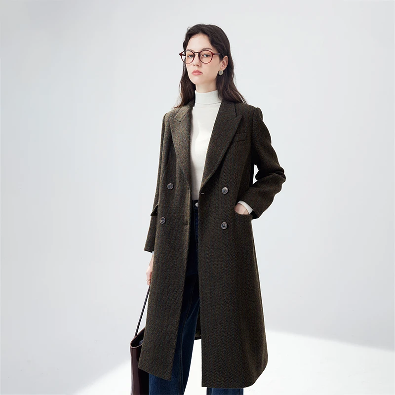 Women's Woolen Jacket Sheep Wool Commuter Suit Thickened Windbreaker with Long Breathable Feature