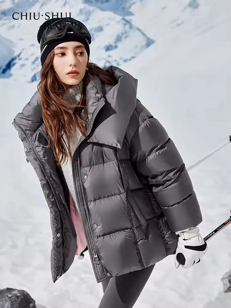 Trendy Women's Hooded Down Short Coat in Grey Ideal for Snowy Days Super Warm and Fashionable Woman Design Clothing