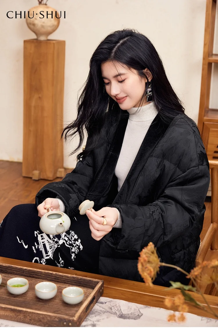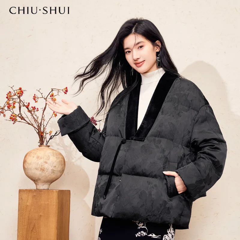 Winter New Jacquard V-Neck Down Jacket Elegant and Warm with Snake Skin Leather Comfortable Stylish Coat