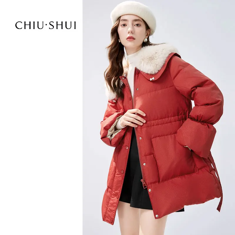 New Winter Long Jacket Women Warm Thickened Real Fox Fur Collar White Duck Down Jacket Waterproof Parkas