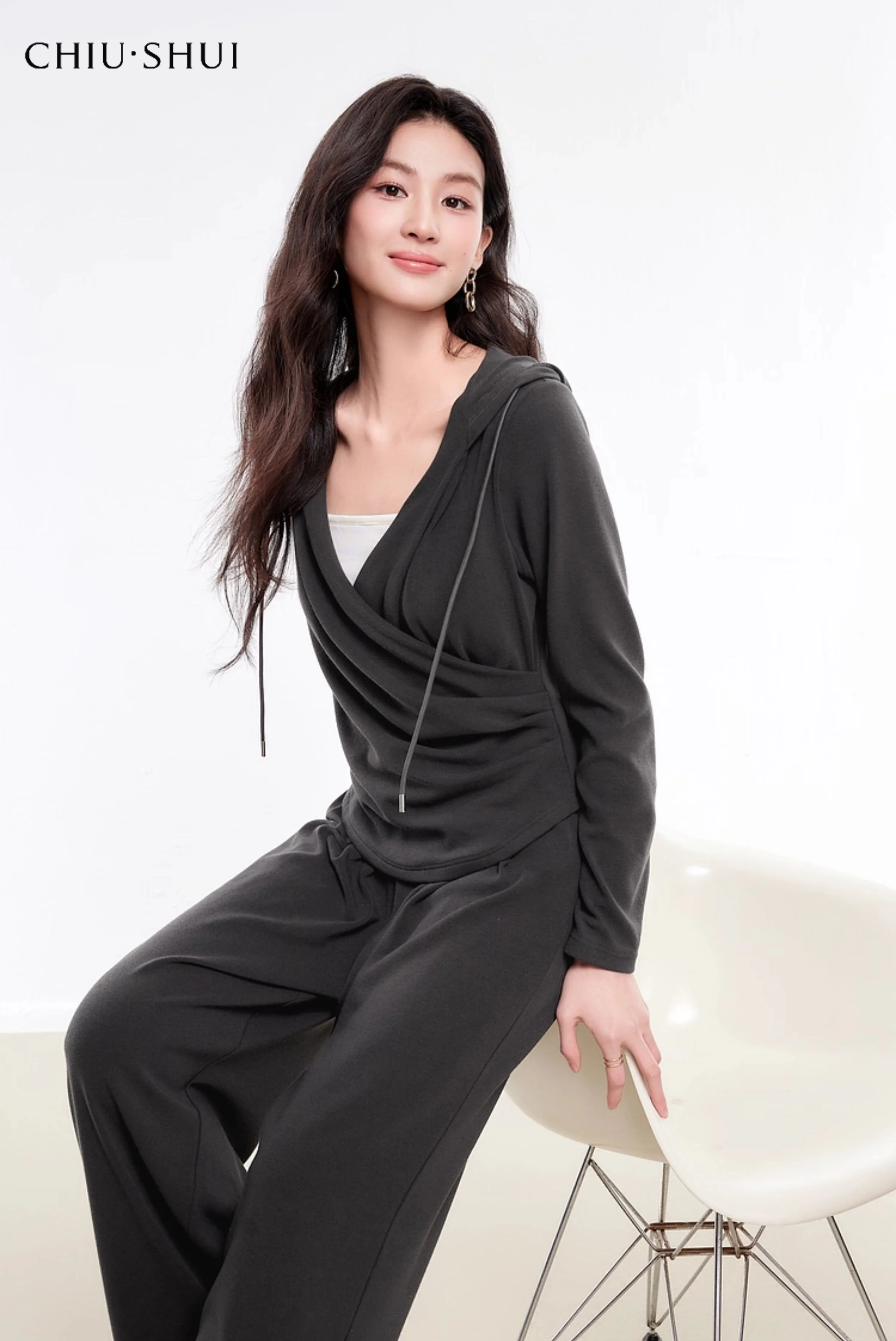 Hot Selling New Simple Commuter Casual Lazy Hooded Two-Piece Sweaters Suit Long Elegant Tops