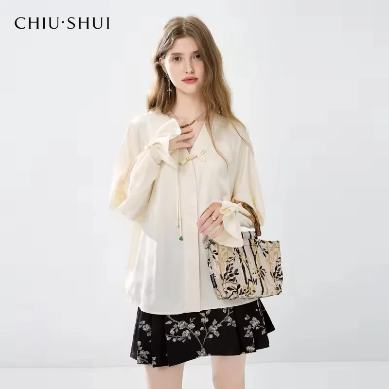 ZYHT 82024 White Blouse with Ruffled Cap Sleeves V-Neck Blouses Et Chemises Pour Femmes White Blouses for Women