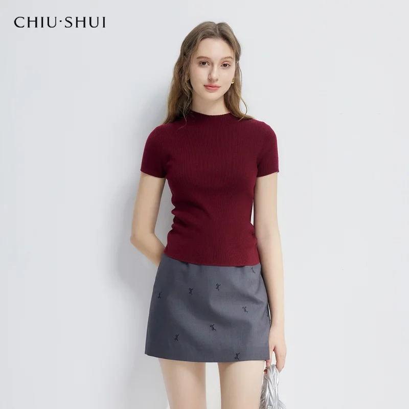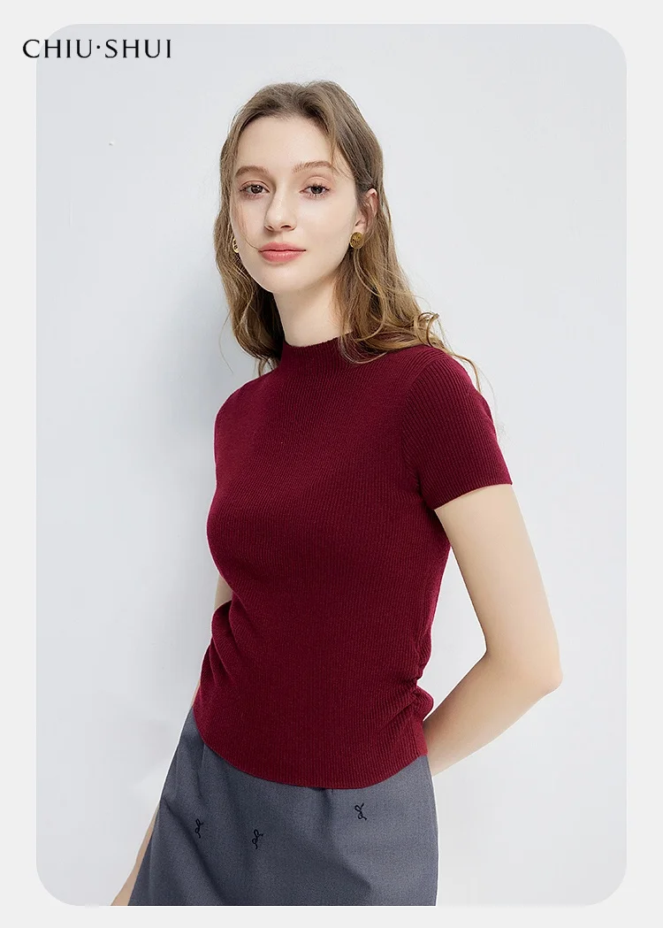 Women's Korean Style Stand Collar Knitted Solid Color Sweater Cloak Spring Short Sleeve