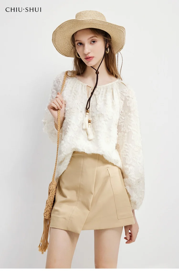 Elegant Retro Embroidery Lace Base Shirt Spring New Embroidered Romantic Neck Top Polyester Broadcloth Flared