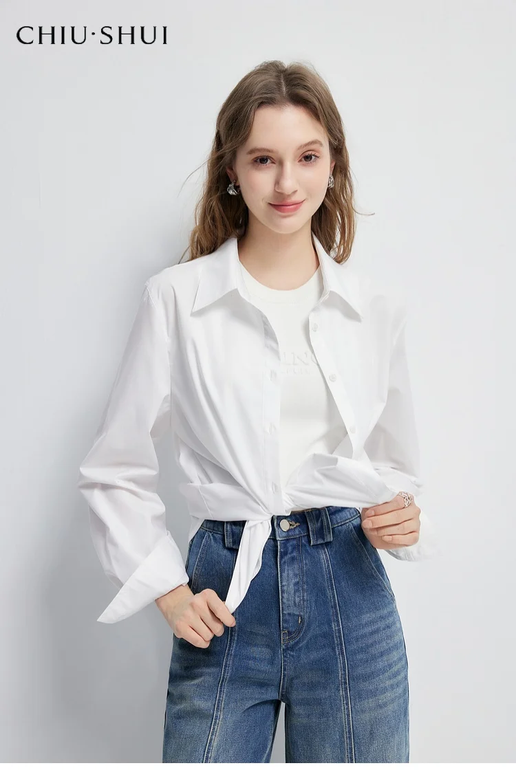 Inner Wear White Shirt Spring New Arrival Women's Long-Sleeved Bestselling Wrinkle-Resistant Solid Shirt