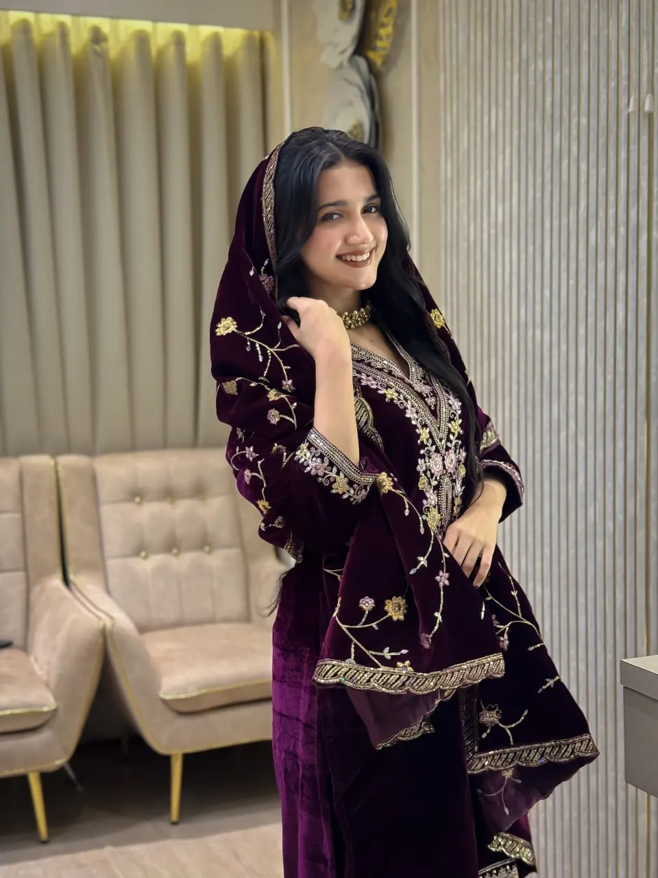 Elegant Full Sleeve Anarkali Suit with Heavy Faux Georgette Fabric Sequence Embroidery & Matching Dupatta for Party Fancy Work