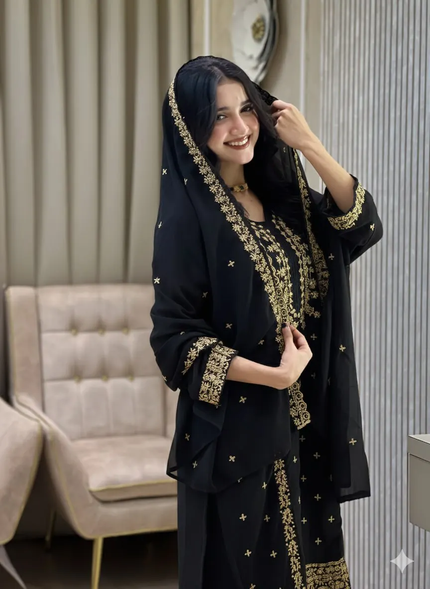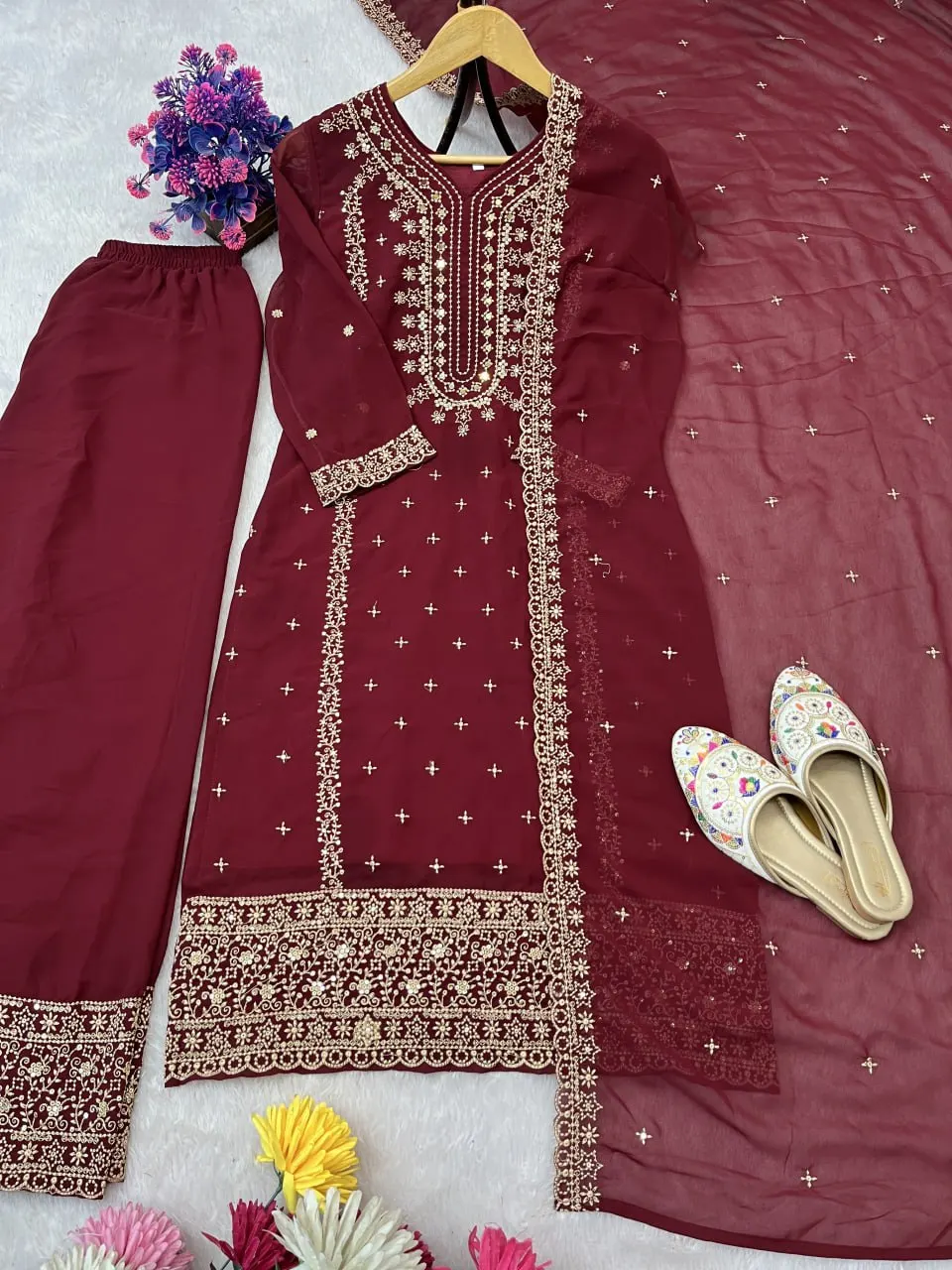Beautiful Top Bottom Dupatta Heavy Embroidery Sequence Work Indian Pakistani Women's Salwar Party Wrinkle Free Quick Dry Sun