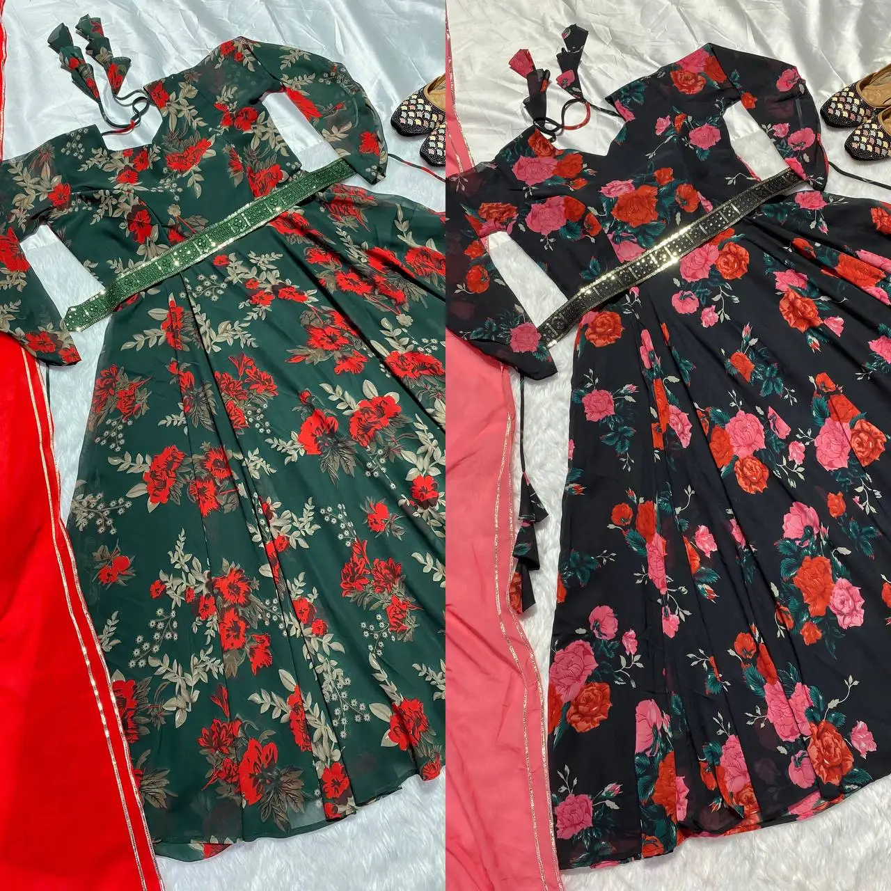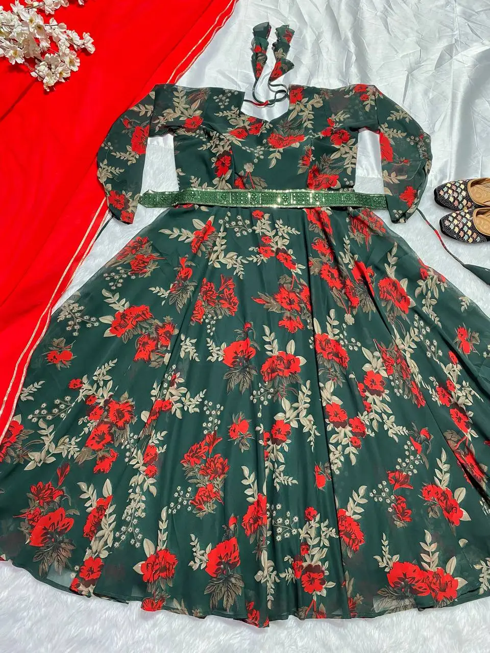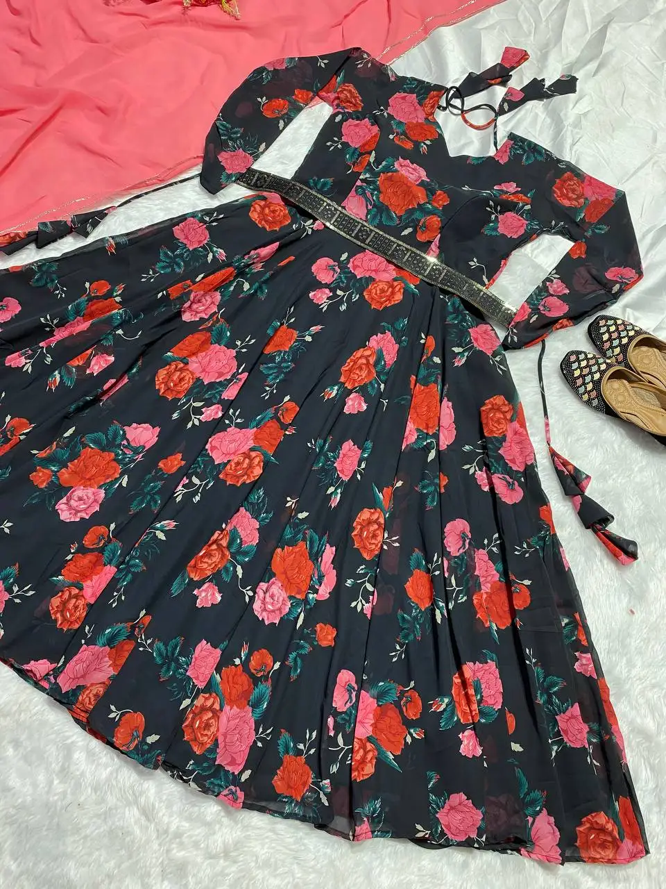 Trendy Full Sleeve Anarkali Dress in Lightweight Printed Faux Georgette for Summer Party and Traditional Occasions