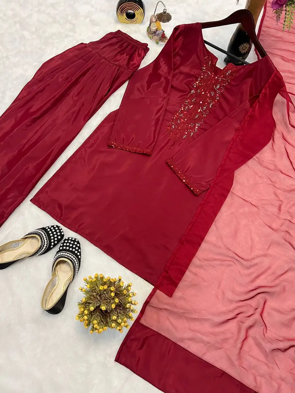 Indian & Pakistani Clothing Red Embroidered Dress with Long Sleeves Suit Salwar Kameez Suit Designer Handmade Traditional Wear