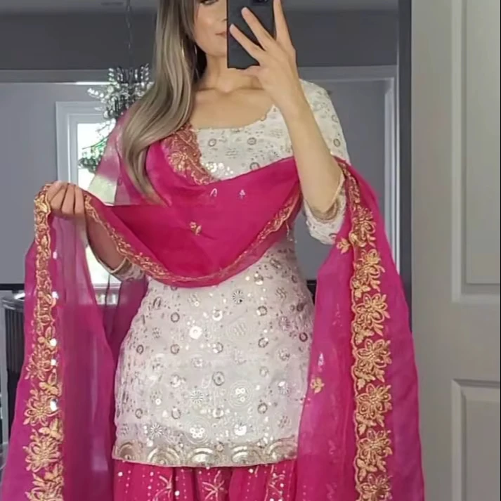 Party Wear Patiala Salwar Suit with Designer Top & Dupatta in Heavy Faux Georgette and 5mm Sequin Embroidery