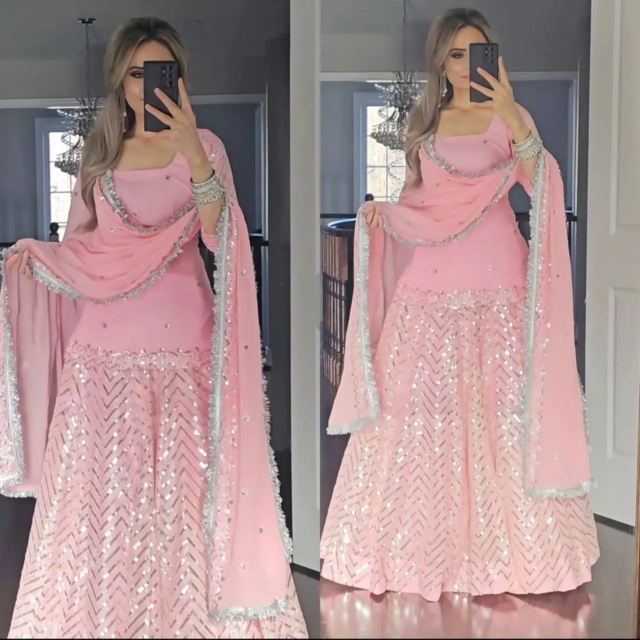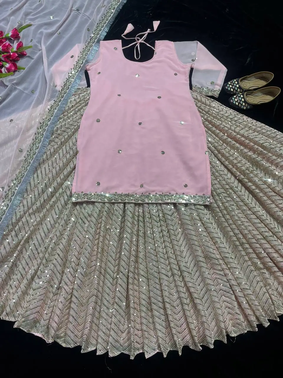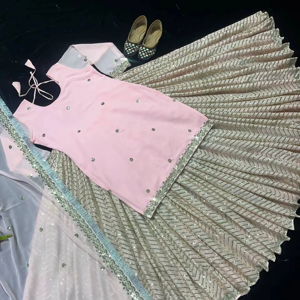 Heavy Faux Georgette Fabric Indian & Pakistani Modern Ethnic Dress Designer Sharara Suit & Palazzo with Dupatta in Low Price