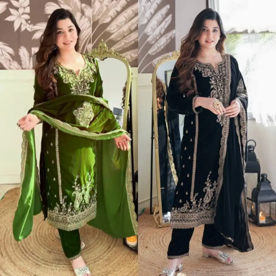 New Designer Heavy Work Indian Pakistani Clothing Salwar Kameez Kurti Pant Set Viscose Velvet Dupatta Included Party Bollywood