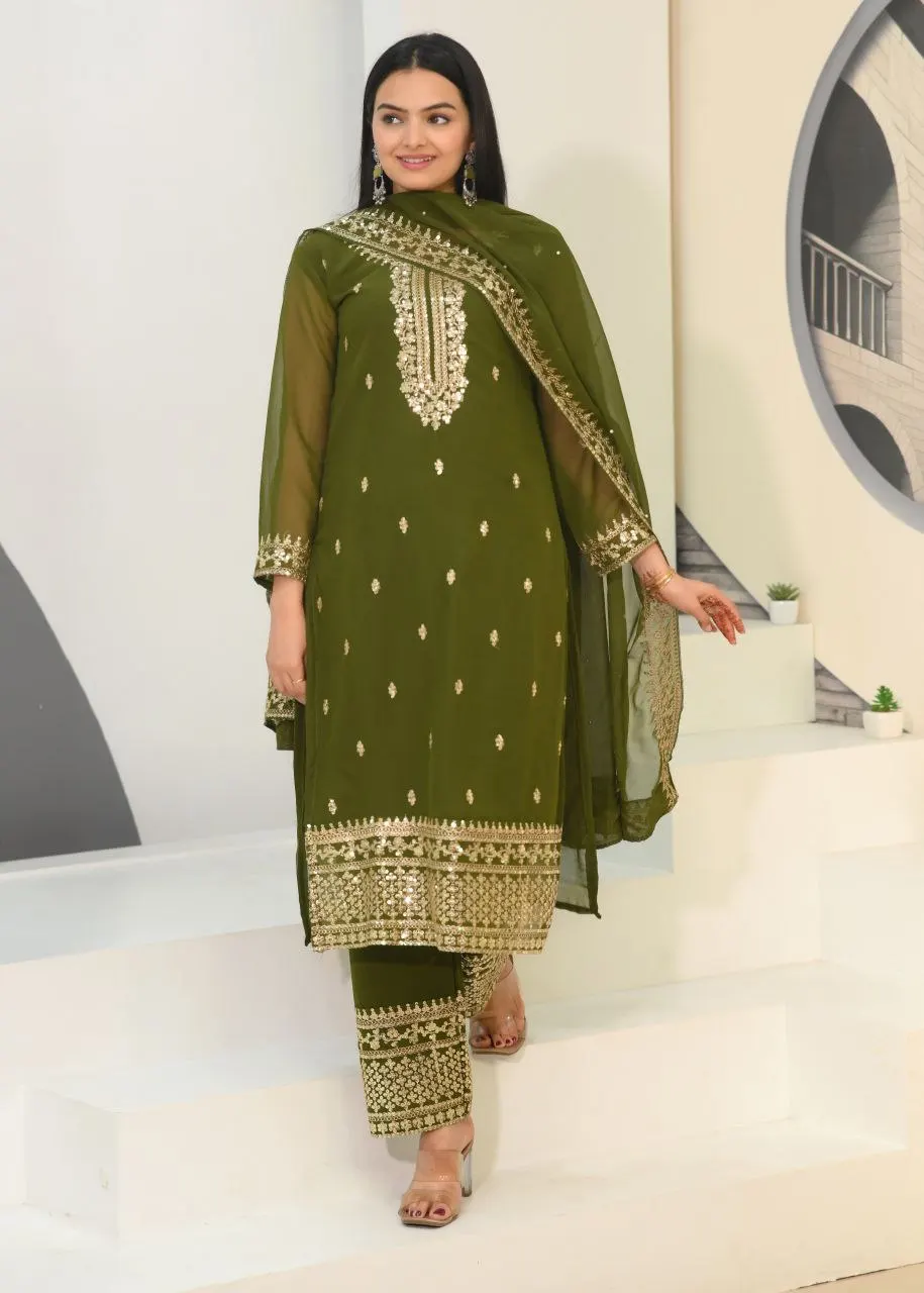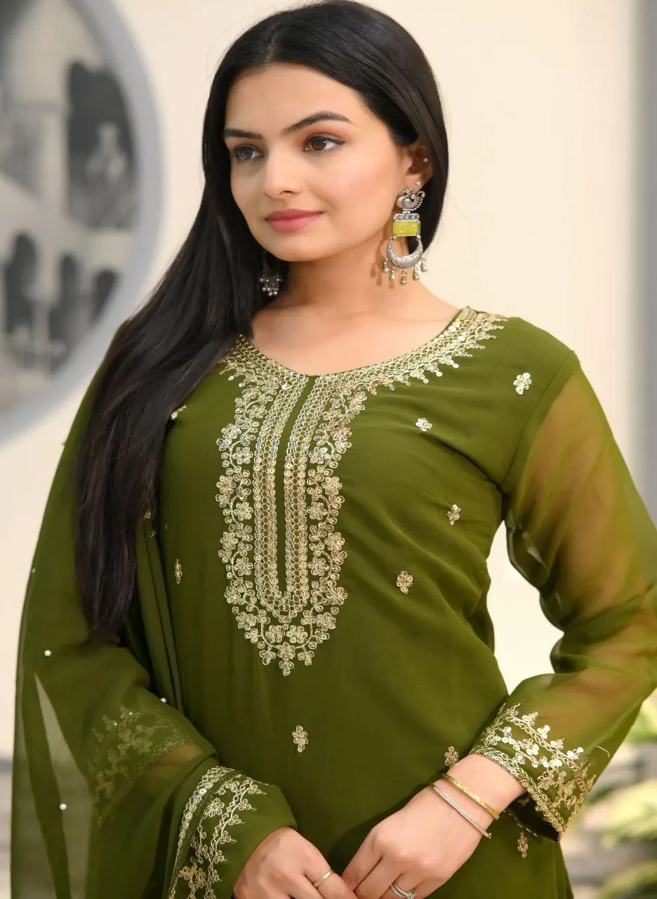 Indian Ethnic Style Faux Georgette Women's Salwar Kameez with Embroidery Sequence Work for Parties India Pakistani Clothing