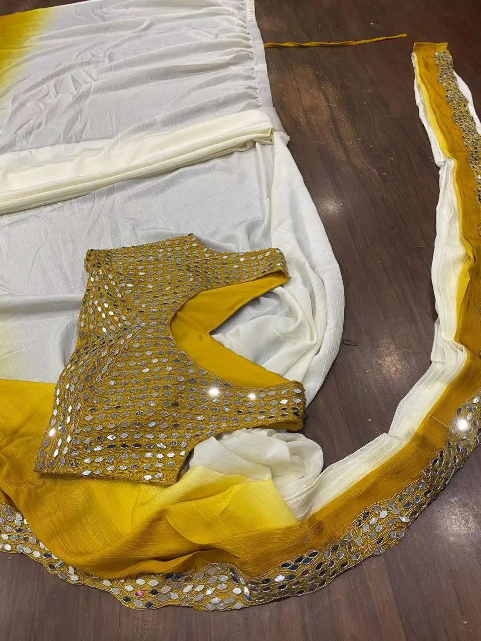 One Minute Yellow Saree Traditional Winter Silk Collection Embroidery Lace Border Fully Stitched Blouse Real Mirror Work Ready