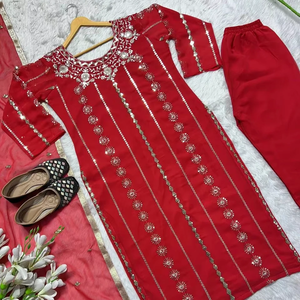 Elegant Heavy Embroidered Sequence Work Salwar Suit for Women New Bollywood Style Sleeves for Parties Indian Pakistani Clothing
