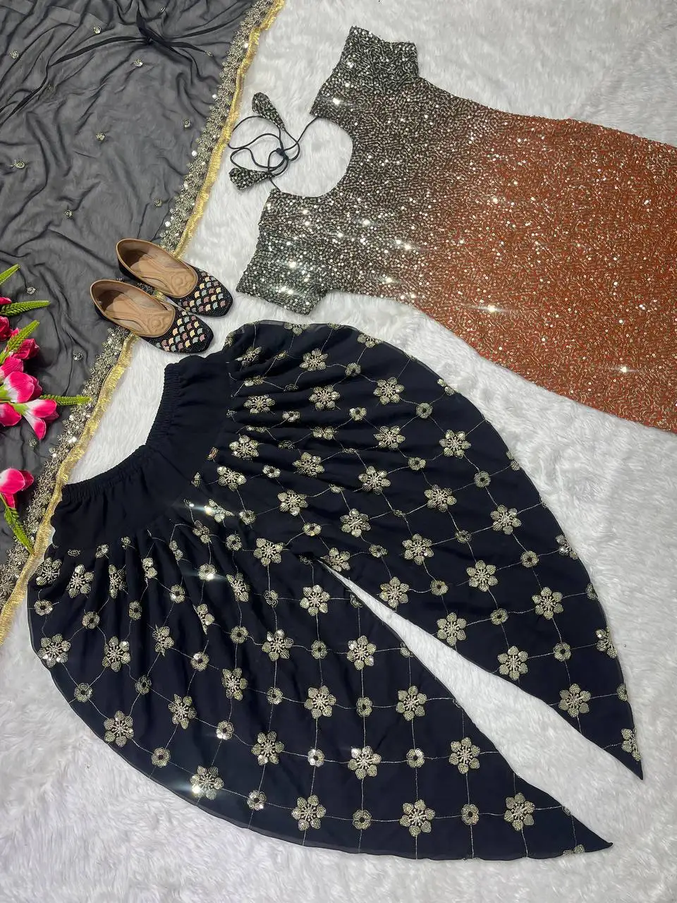 Stylish Bollywood Salwar Outfit with Heavy 5mm Sequin Embroidery & Digital Print Short Sleeves for Winter Parties