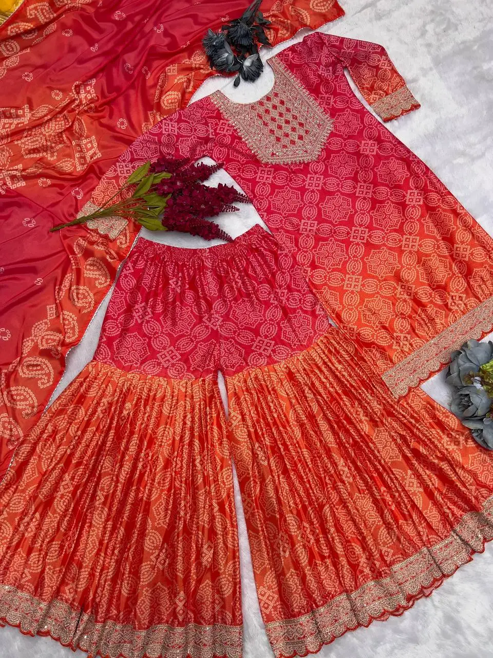 High Demand Winter Party Wear Modest Sharara Palazzo Dupatta with Chinon Silk Best Price by Antra Lifestyle