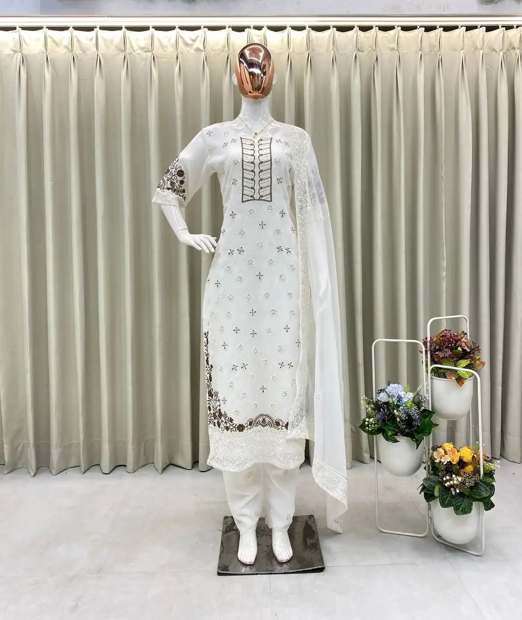 Elegant Designer Pure Faux Georgette Salwar Kameez Suit with Embroidery Work-Ready to Wear Wedding & Party Quick Dry