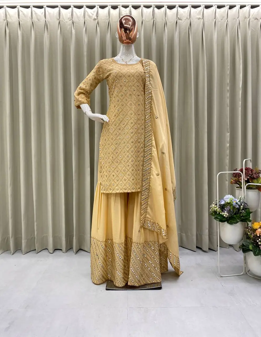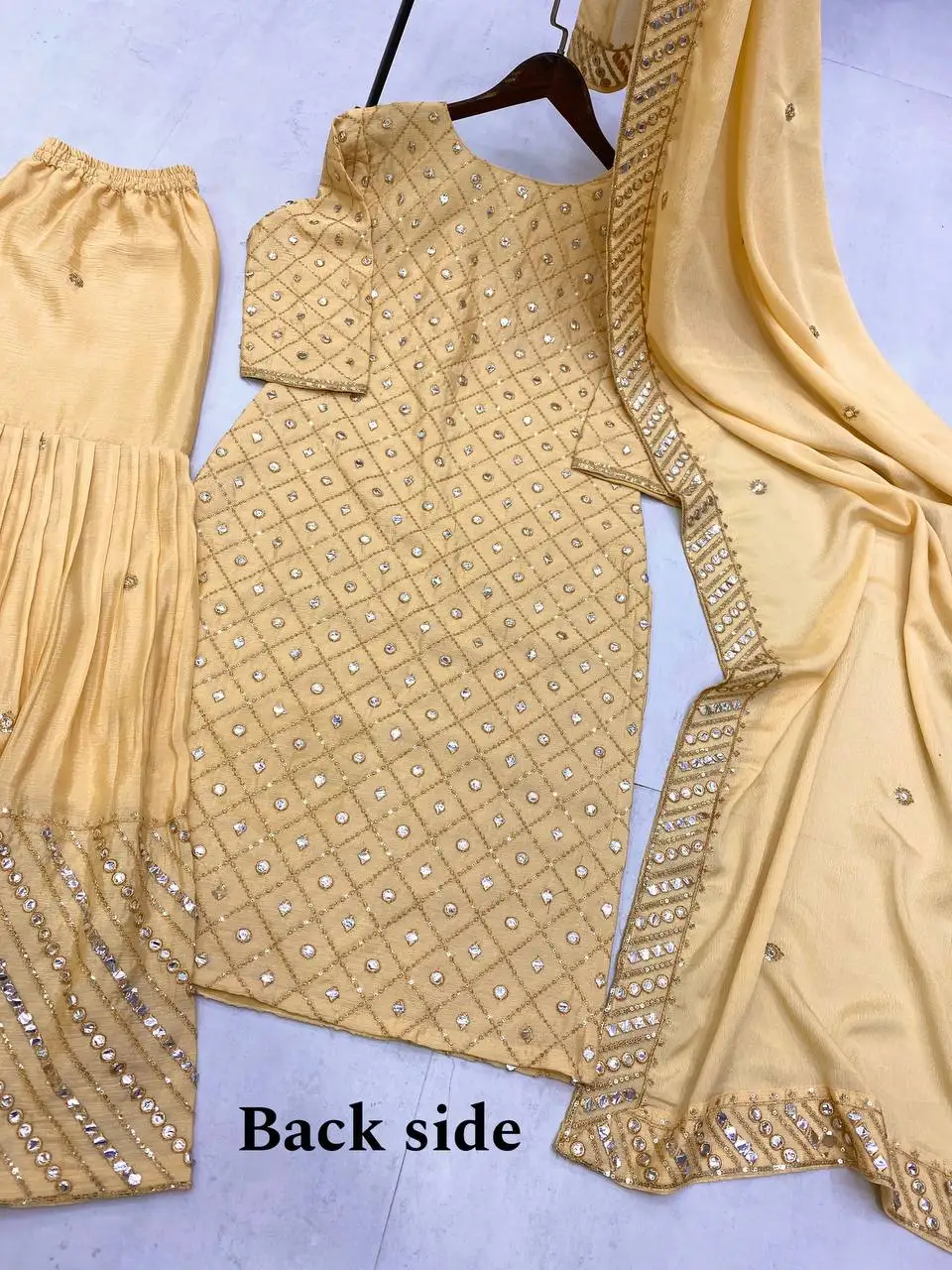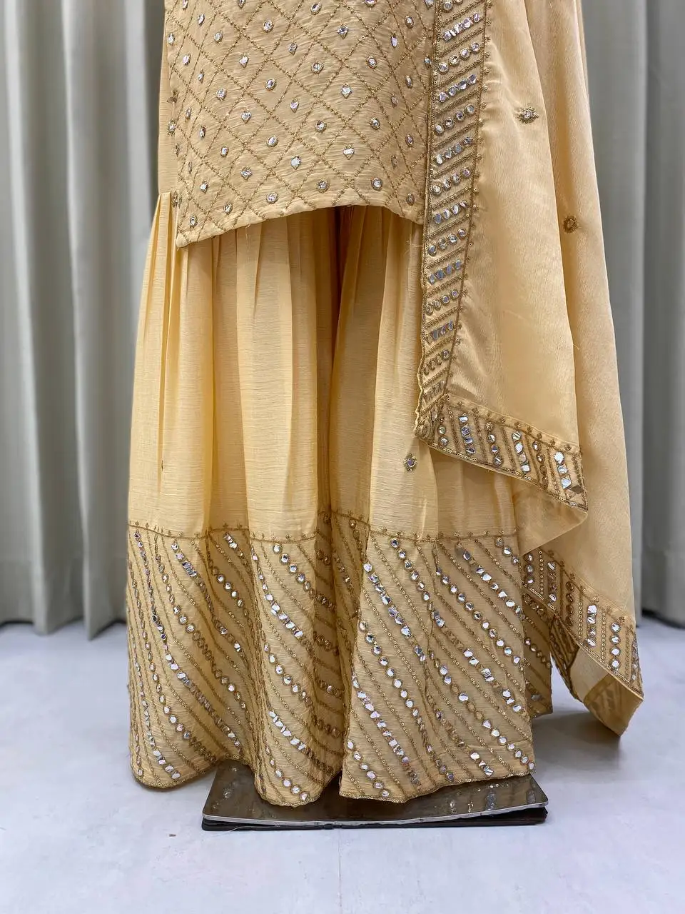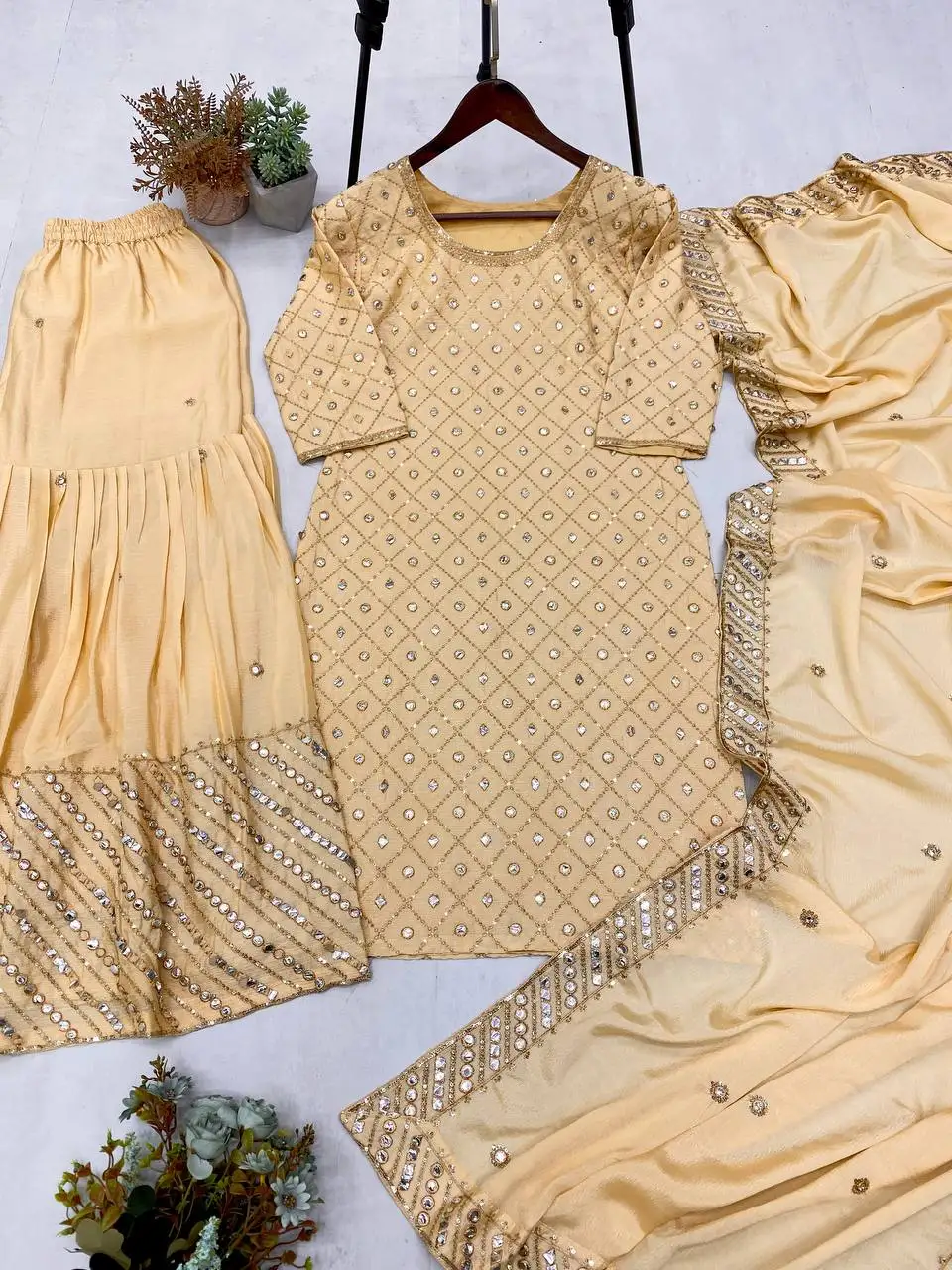 Elegant Pakistani Sharara Gharara Streetwear Design Floral Pattern Eco-Friendly Heavy Chinon Silk Daily High Quality Fancy Suit