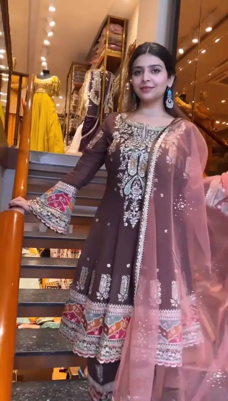 Best Price Elegant Heavy Faux Georgette Butterfly Net Sequin Multi Embroidery Bollywood Suit for Women Party Salwar Kameez