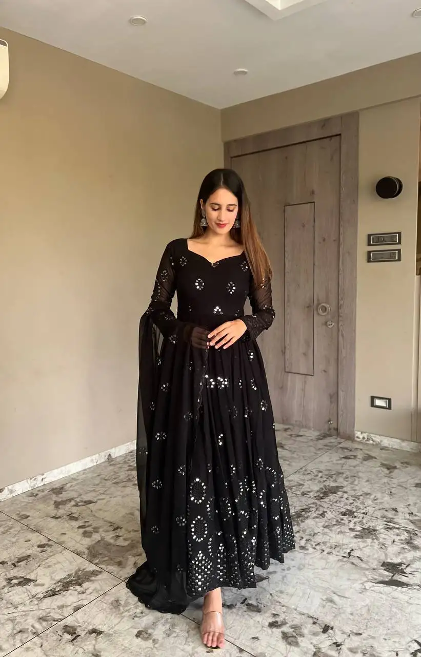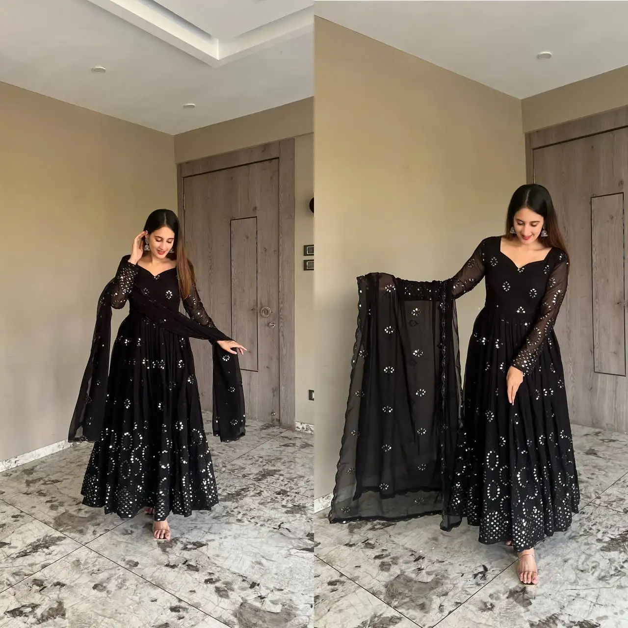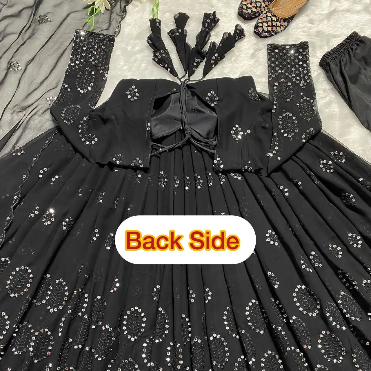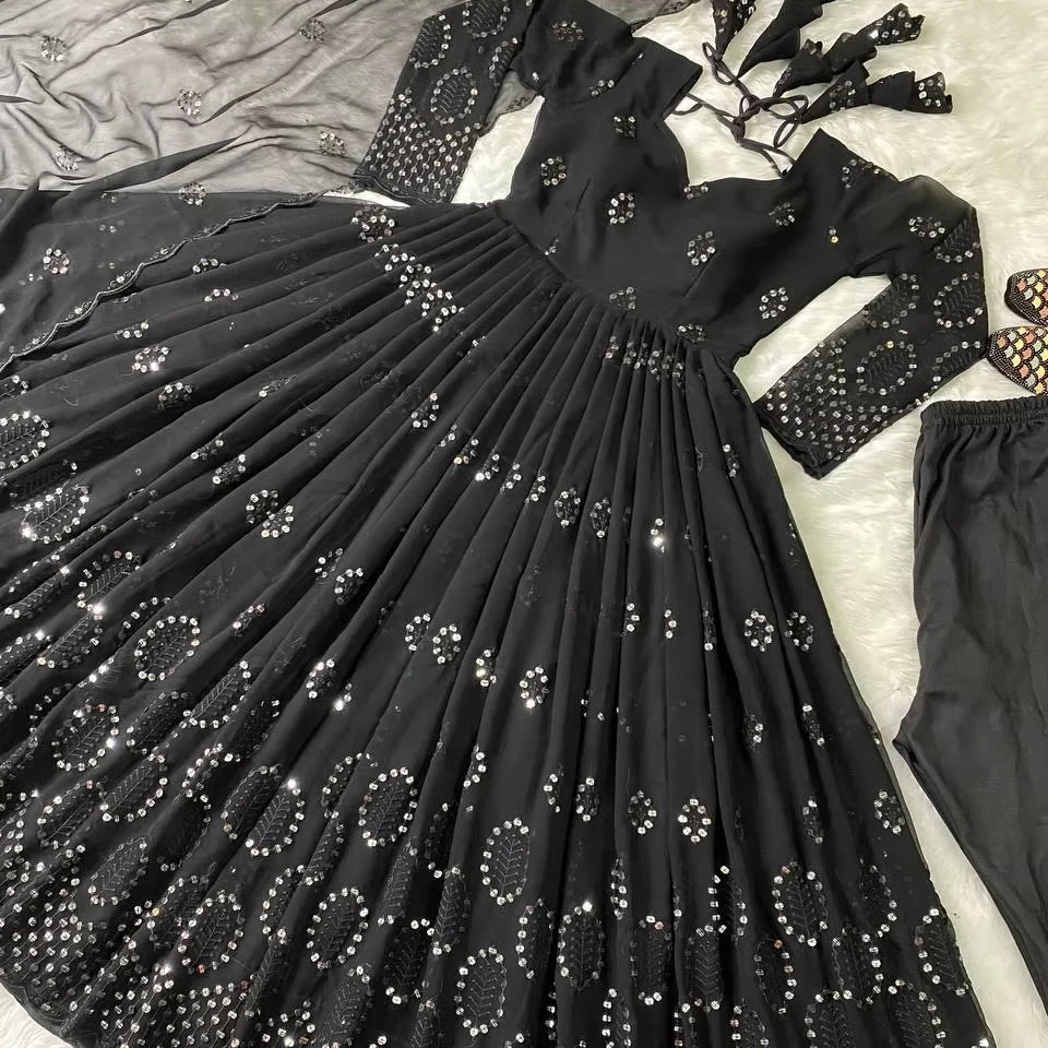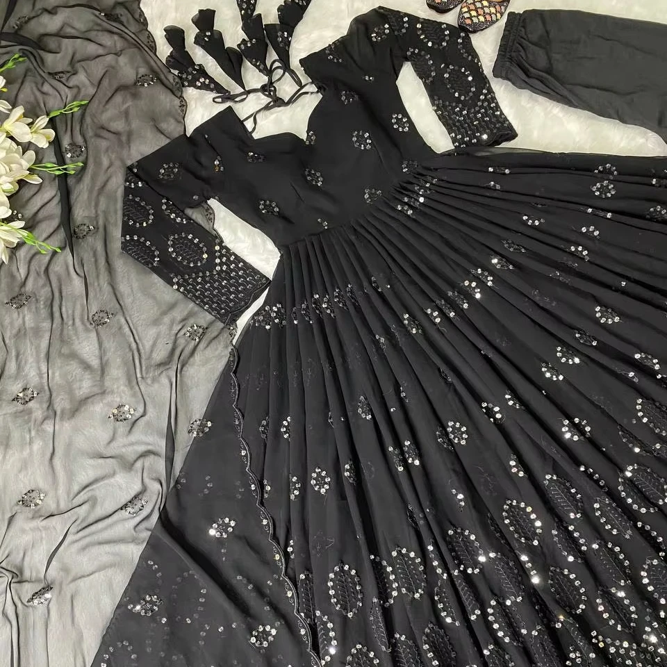 Designer Heavy Faux Georgette Sequence Embroidery Anarkali Suit Full Sleeves for Party Raksha Bandhan Indian Pakistani Clothing