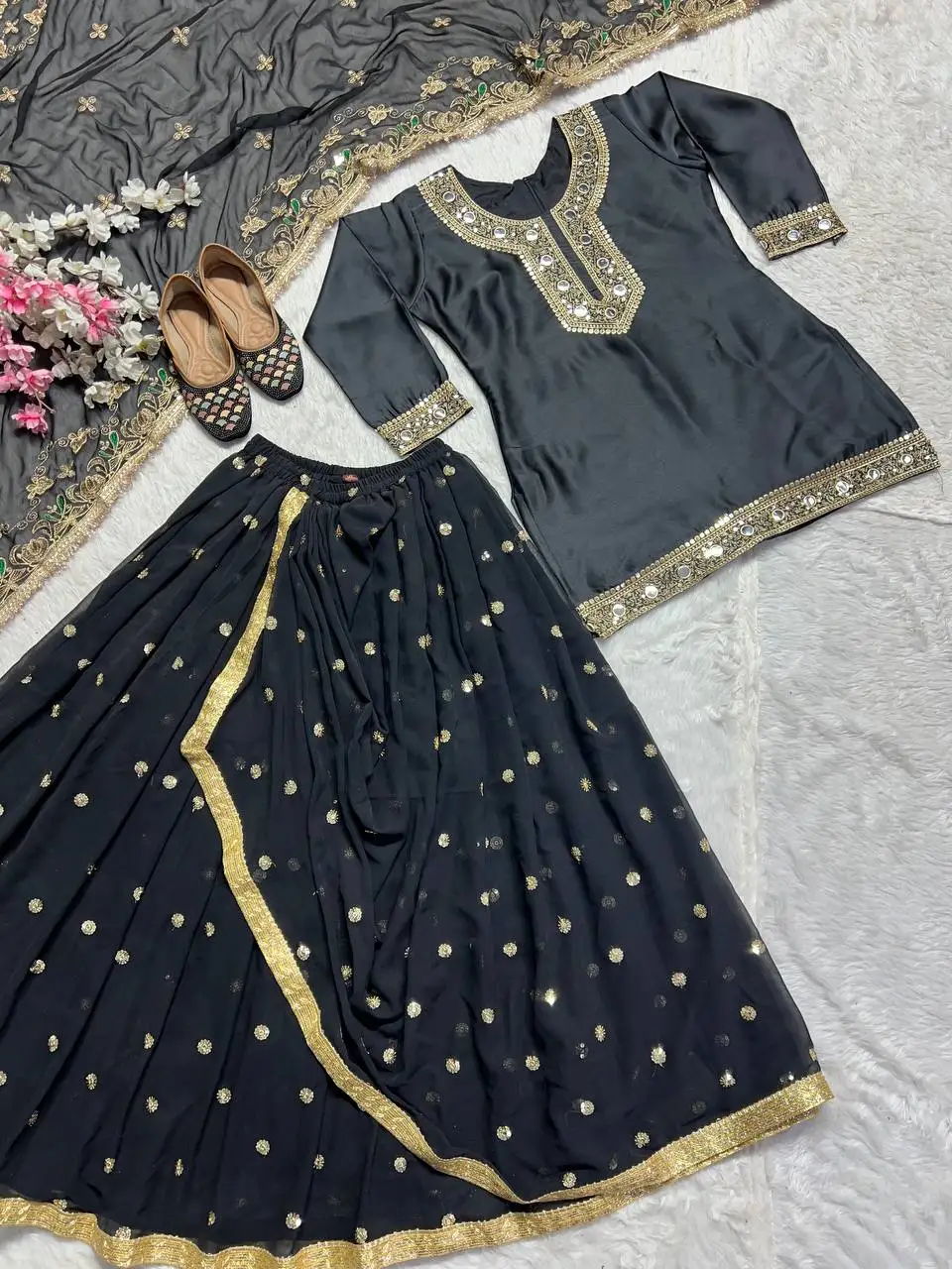 Punjabi Patiyala Newly Launched Designer Women's Party Wear Set Top Dhoti Skirt Dupatta Lehenga Set with Top and Dupatta