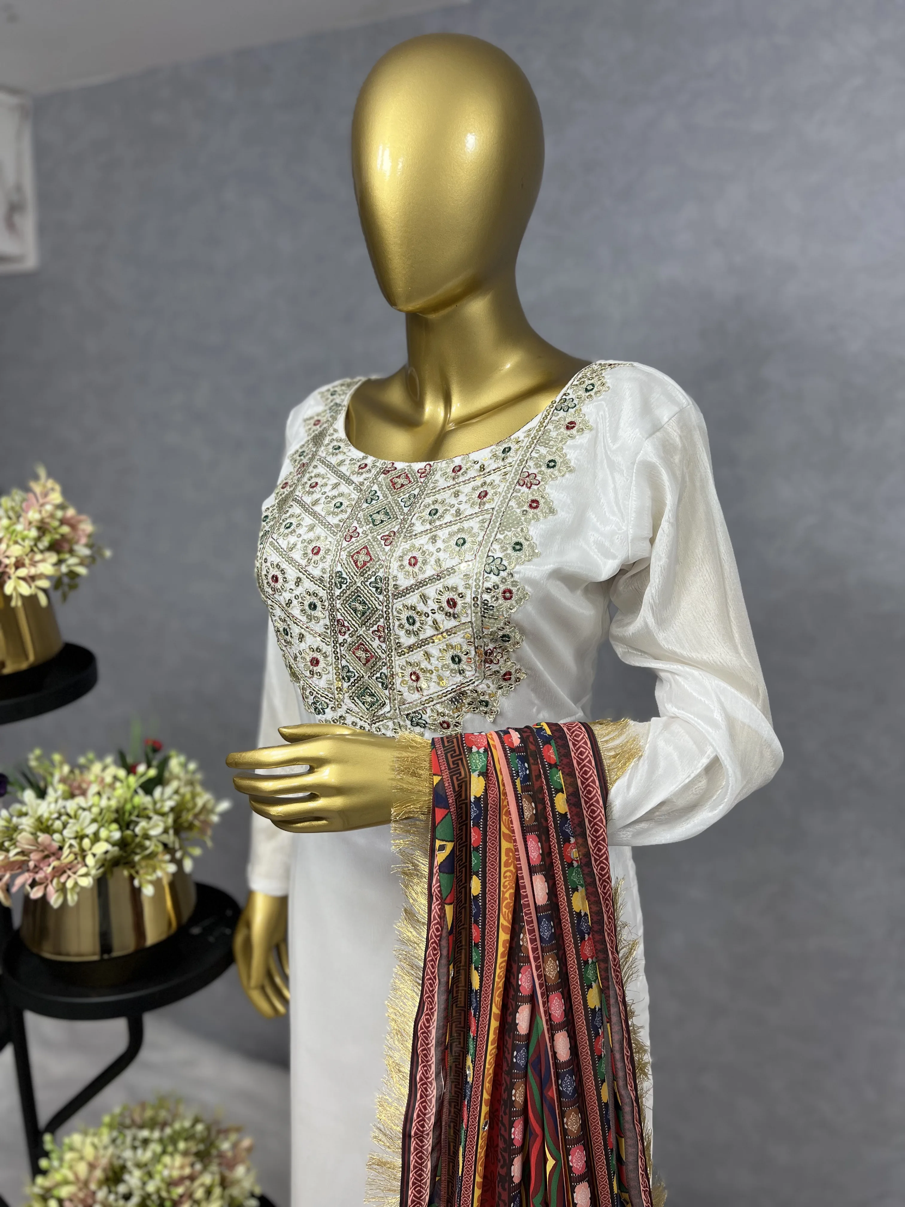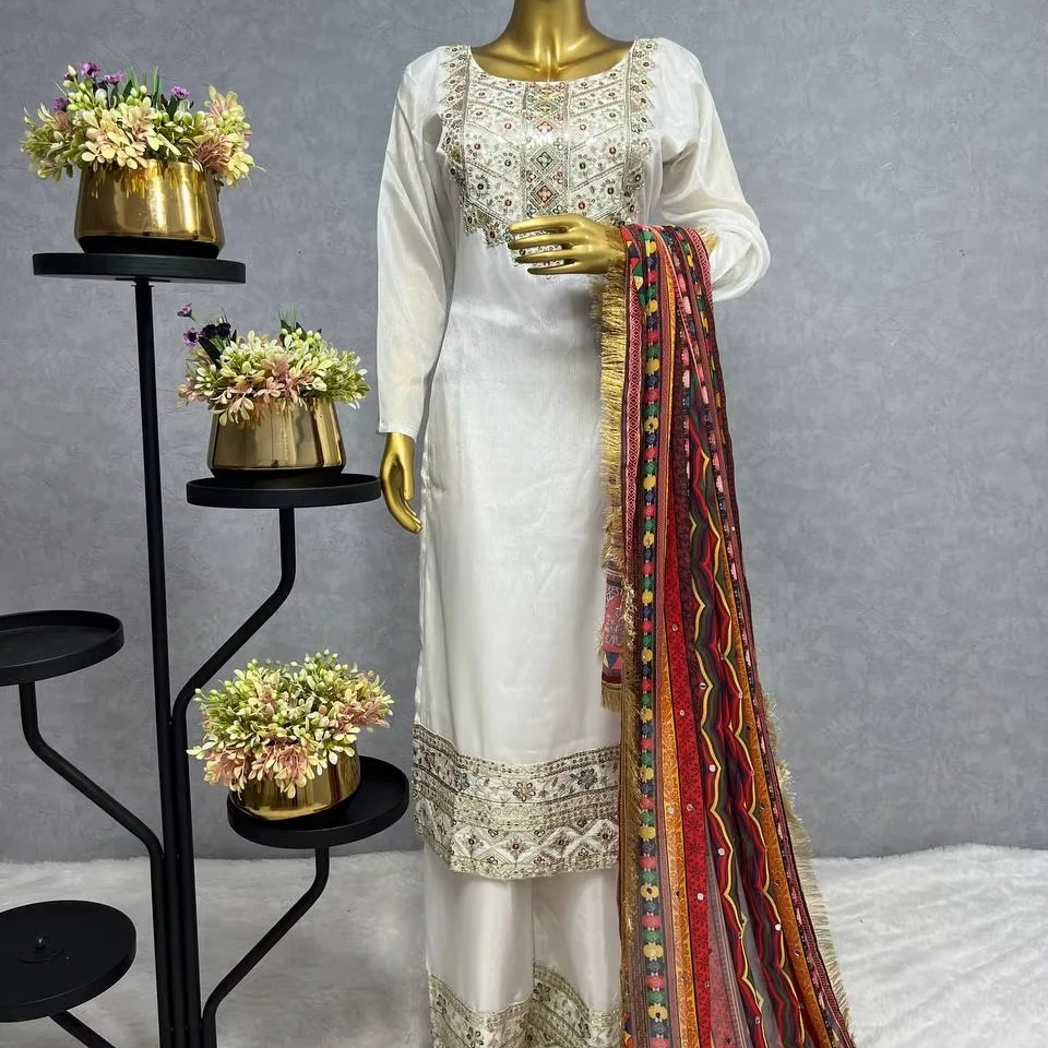 Latest Designer Chinon Silk Embroidery Sequence Work Indian Ethnic Dress High Quality Adult Kurti Set