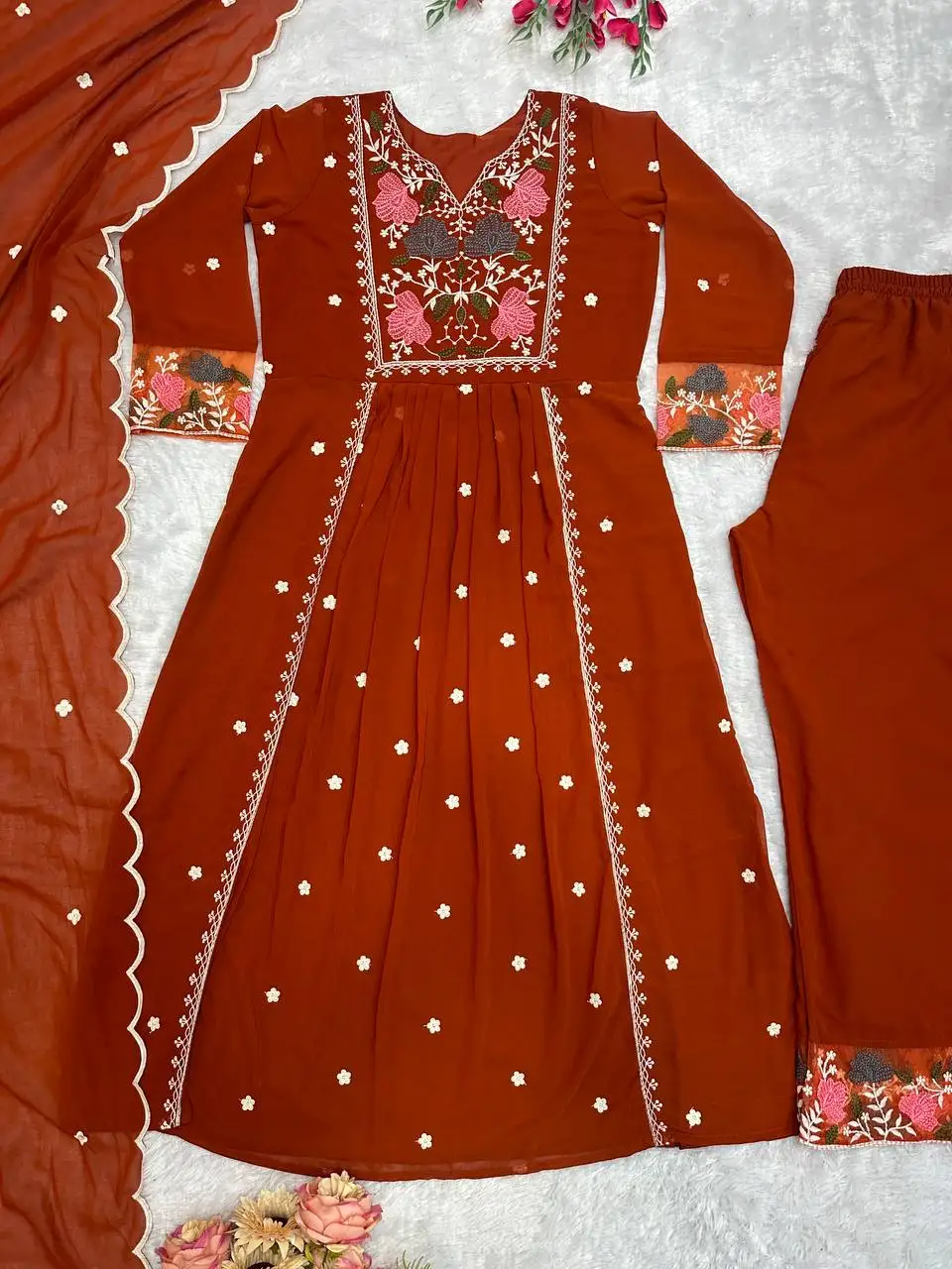 Indian and Pakistani Style Long Anarkali Fancy Bollywood Style Gowns With Faux Blooming Dupatta With Sequins Embroidered Work