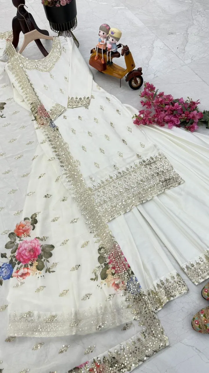 Exclusive Three-Piece Dress Collection Designer Festive Wear Diwali Holi Featuring Pure Chinon Silk Attractive Neck Launching