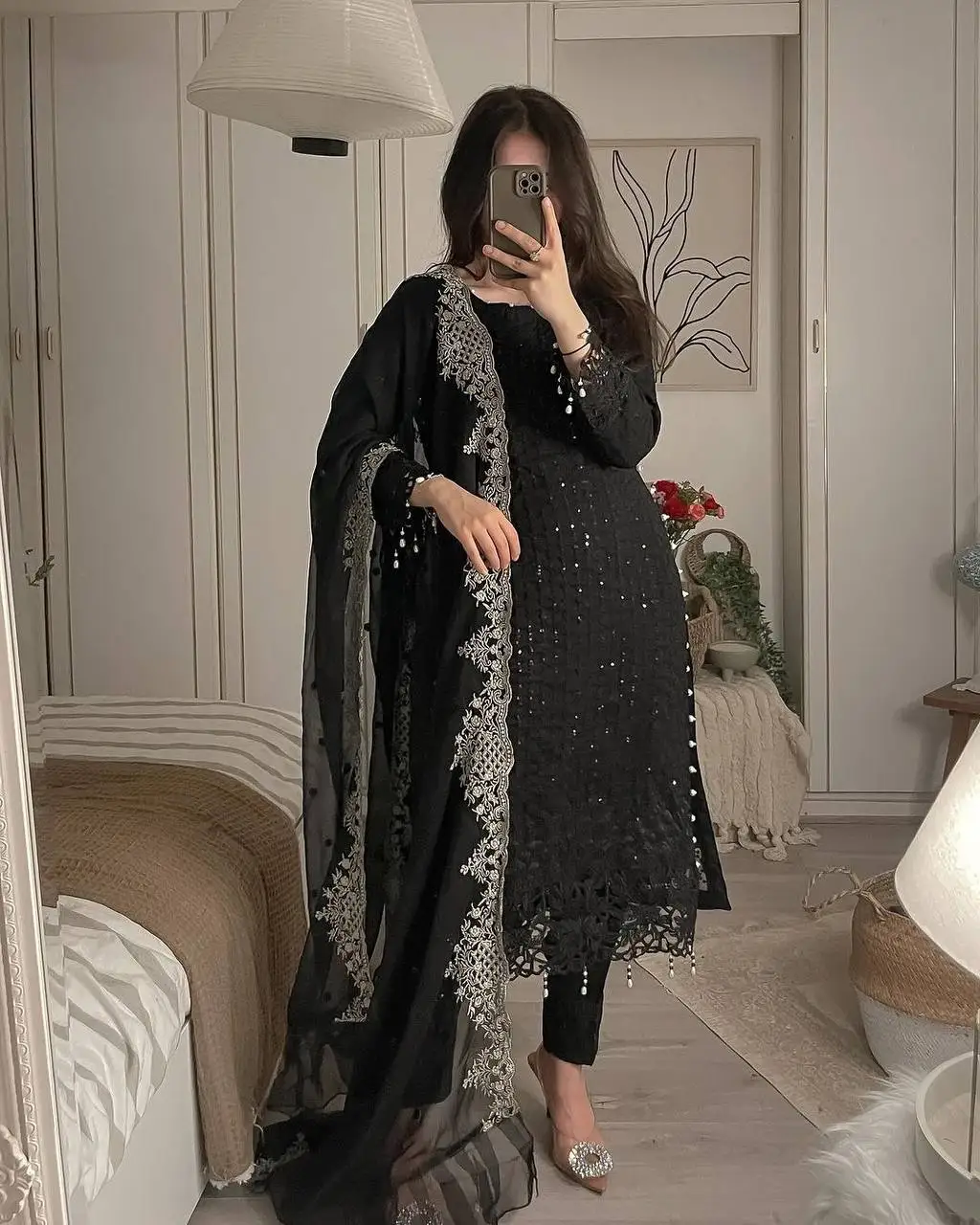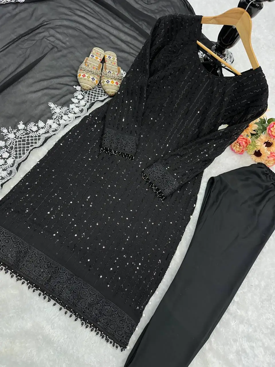 Hot Selling Eid Ramzan Special Faux Georgette With Embroidery Work Salwar Kameez Pakistani Straight Kurta with Pant at Wholesale