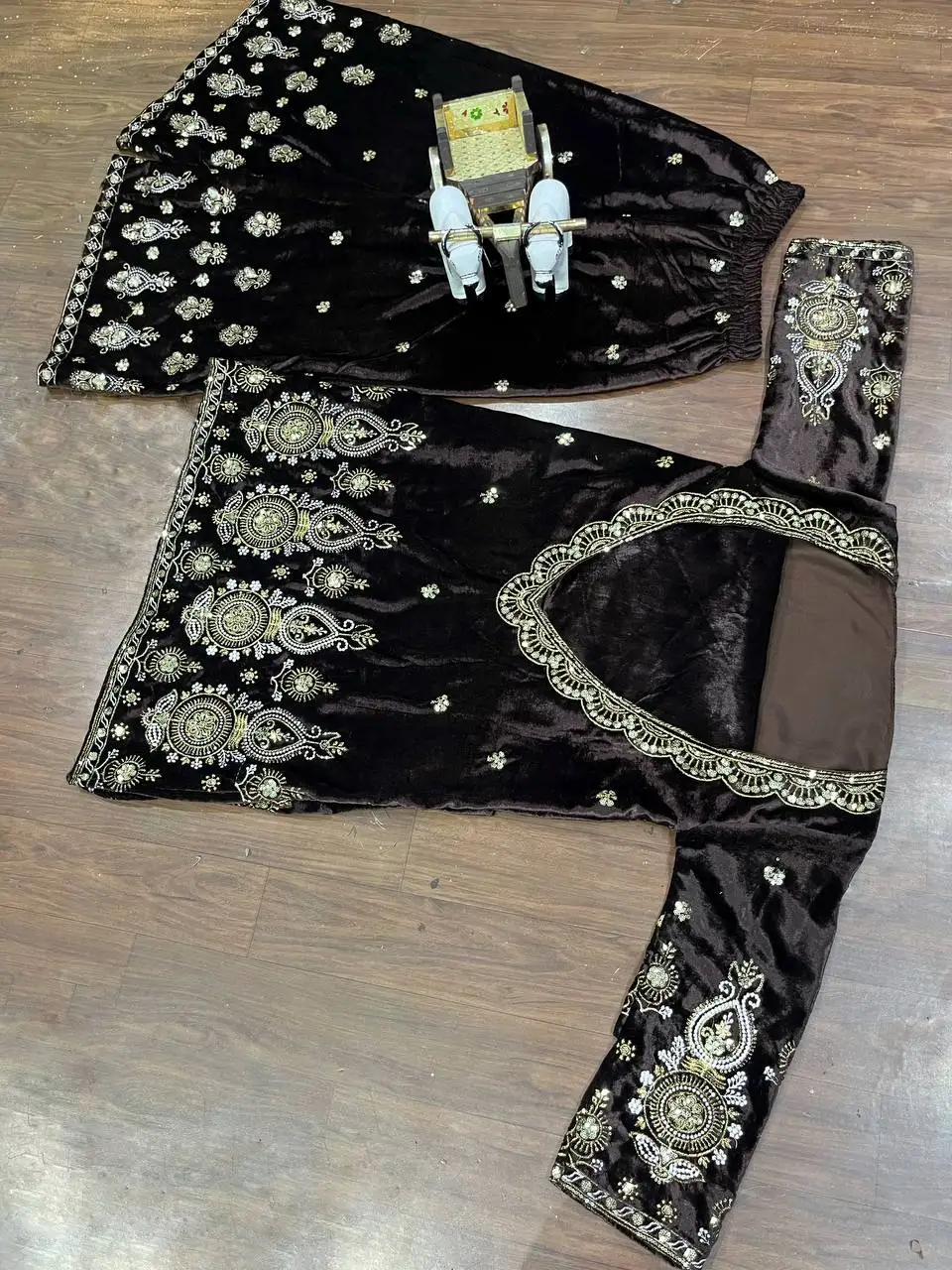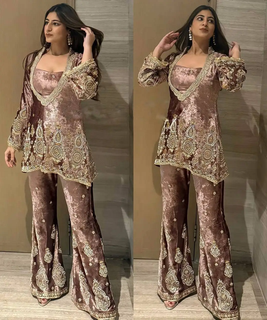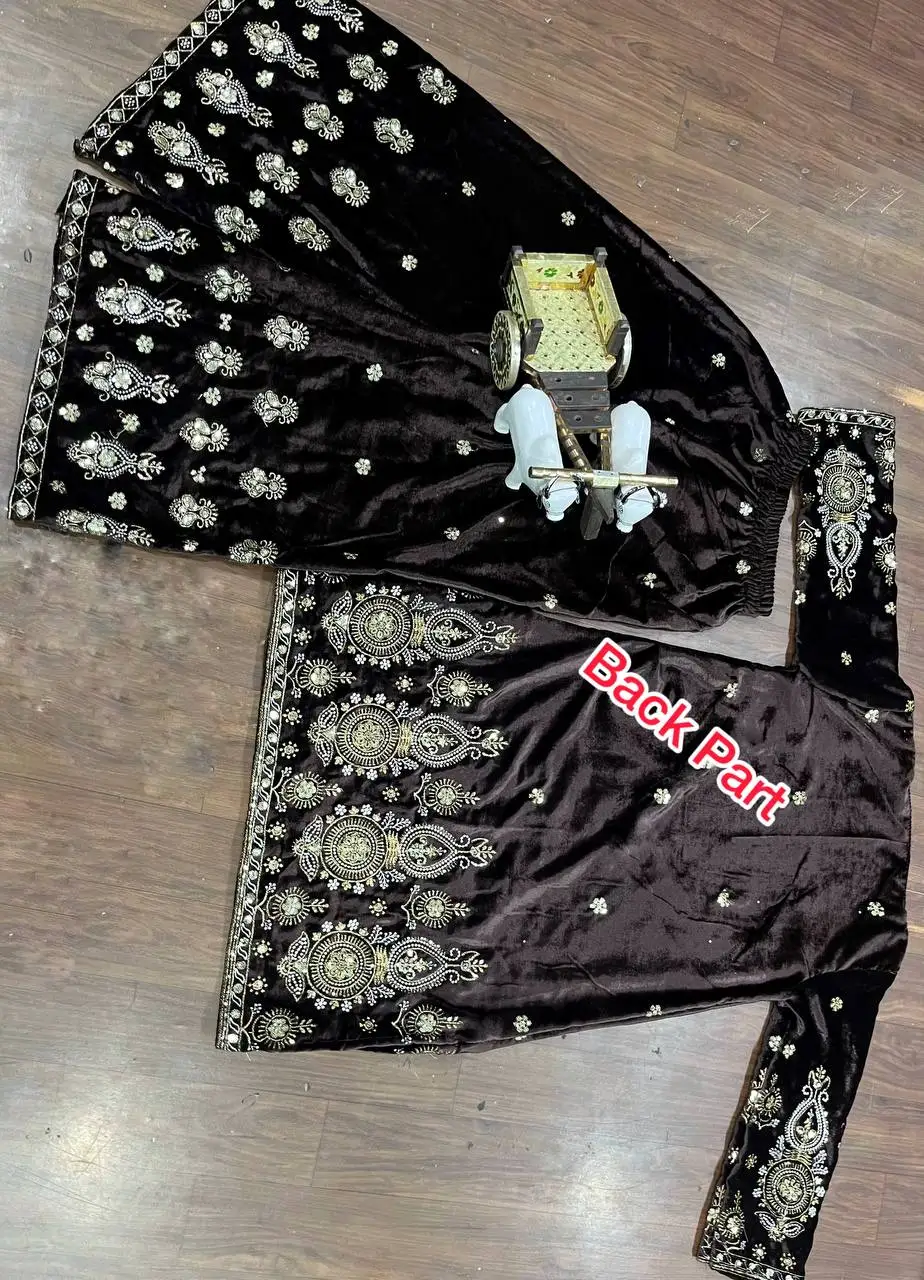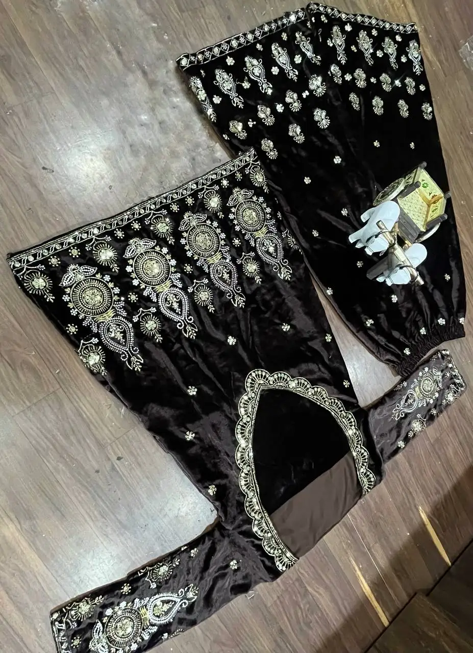 Designer 2025 Women's Sexy Velvet Bollywood Style Salwar Kameez Party Wear Fusion Top Bottom Embroidery Sequins Work Indian