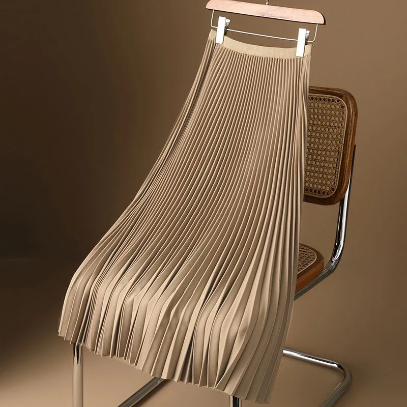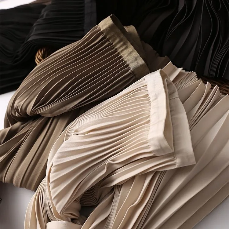 2025 New Luxury Satin Pleated Skirt Wholesale Women's Plus Size Solid Skirts for Office Banquet Bulk Order
