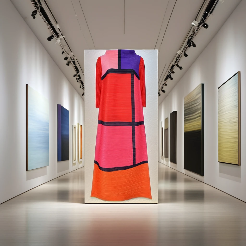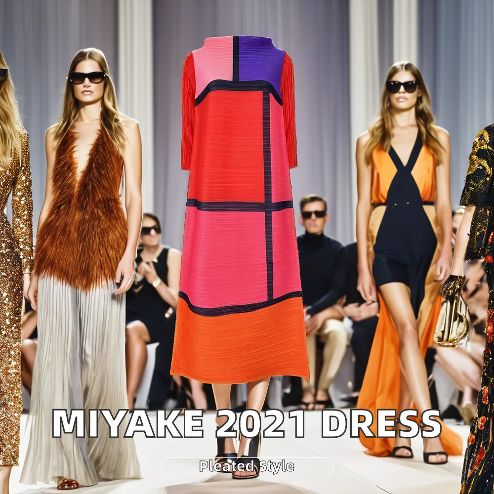 Miyake Pleated Casual Women's Skirt New Summer Collection Contrast Color Loose Fit Breathable Polyester Sweet Natural